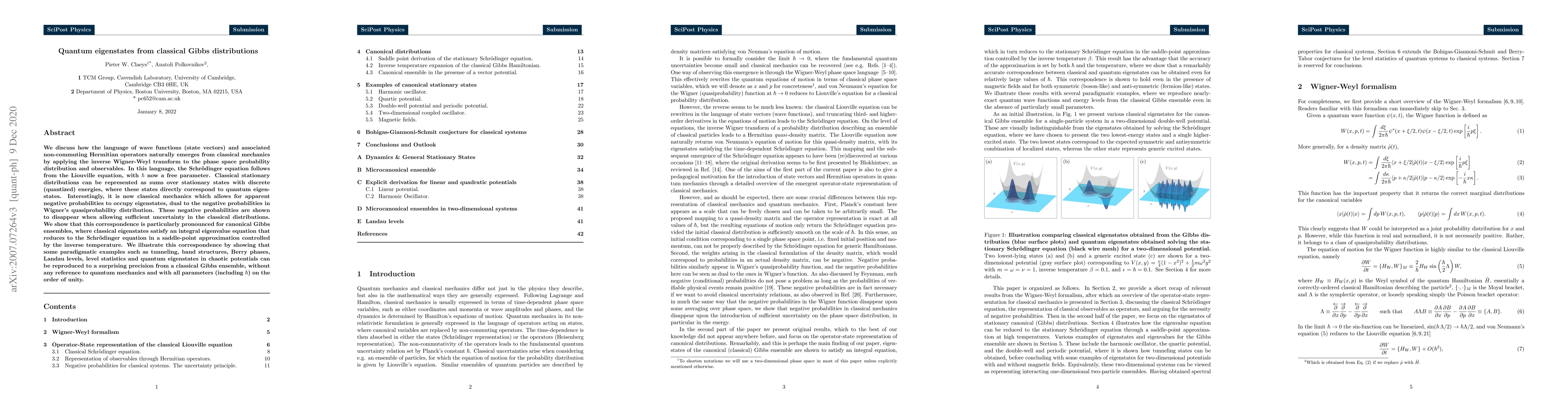 We discuss how the language of wave functions (state vectors) and associated non-commuting Hermitian operators naturally emerges from classical mechanics by applying the inverse Wigner-Weyl transform to the phase space probability distribution and observables. In this language, the Schr\"odinger equation follows from the Liouville equation, with $\hbar$ now a free parameter. Classical stationary distributions can be represented as sums over stationary states with discrete (quantized) energies, where these states directly correspond to quantum eigenstates. Interestingly, it is now classical mechanics which allows for apparent negative probabilities to occupy eigenstates, dual to the negative probabilities in Wigner's quasiprobability distribution. These negative probabilities are shown to disappear when allowing sufficient uncertainty in the classical distributions. We show that this correspondence is particularly pronounced for canonical Gibbs ensembles, where classical eigenstates satisfy an integral eigenvalue equation that reduces to the Schr\"odinger equation in a saddle-point approximation controlled by the inverse temperature. We illustrate this correspondence by showing that some paradigmatic examples such as tunneling, band structures, Berry phases, Landau levels, level statistics and quantum eigenstates in chaotic potentials can be reproduced to a surprising precision from a classical Gibbs ensemble, without any reference to quantum mechanics and with all parameters (including $\hbar$) on the order of unity.
