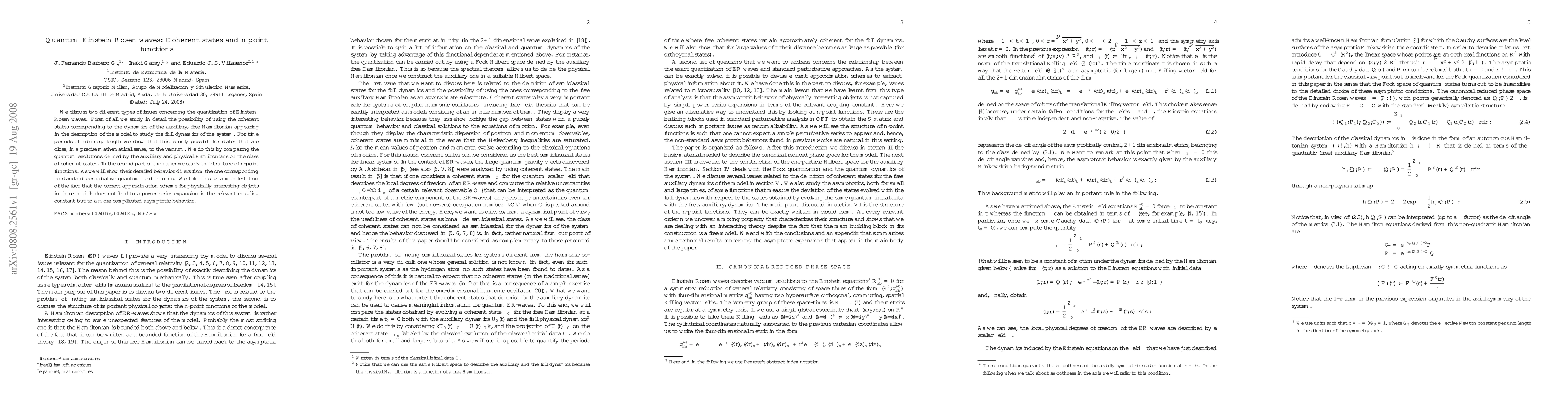 We discuss two different types of issues concerning the quantization of Einstein-Rosen waves. First of all we study in detail the possibility of using the coherent states corresponding to the dynamics of the auxiliary, free Hamiltonian appearing in the description of the model to study the full dynamics of the system. For time periods of arbitrary length we show that this is only possible for states that are close, in a precise mathematical sense, to the vacuum. We do this by comparing the quantum evolutions defined by the auxiliary and physical Hamiltonians on the class of coherent states. In the second part of the paper we study the structure of n-point functions. As we will show their detailed behavior differs from the one corresponding to standard perturbative quantum field theories. We take this as a manifestation of the fact that the correct approximation scheme for physically interesting objects in these models does not lead to a power series expansion in the relevant coupling constant but to a more complicated asymptotic behavior.