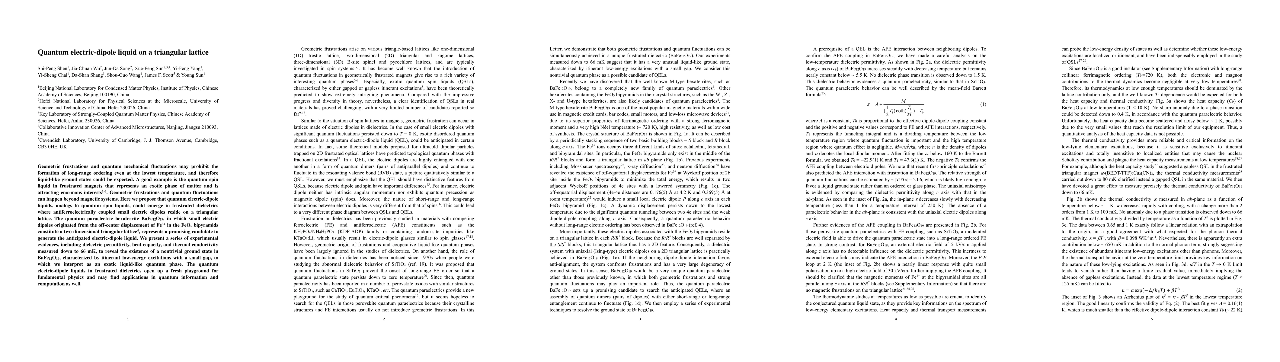 This paper proposes the existence of quantum electric-dipole liquids in frustrated dielectrics, analogous to quantum spin liquids in magnets. Experimental evidence from BaFe12O19 suggests a nontrivial ground state with itinerant low-energy excitations, indicating a liquid-like quantum phase.