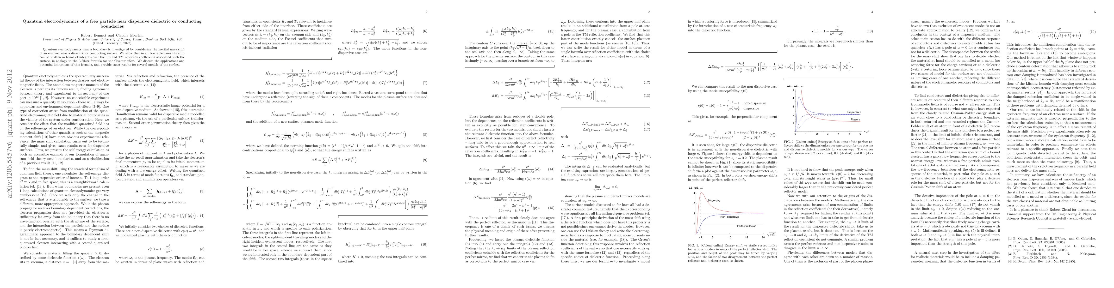 Researchers investigated how a particle interacts with a dielectric or conducting surface near its boundary, finding that the interaction can be described using reflection coefficients similar to the Casimir effect.