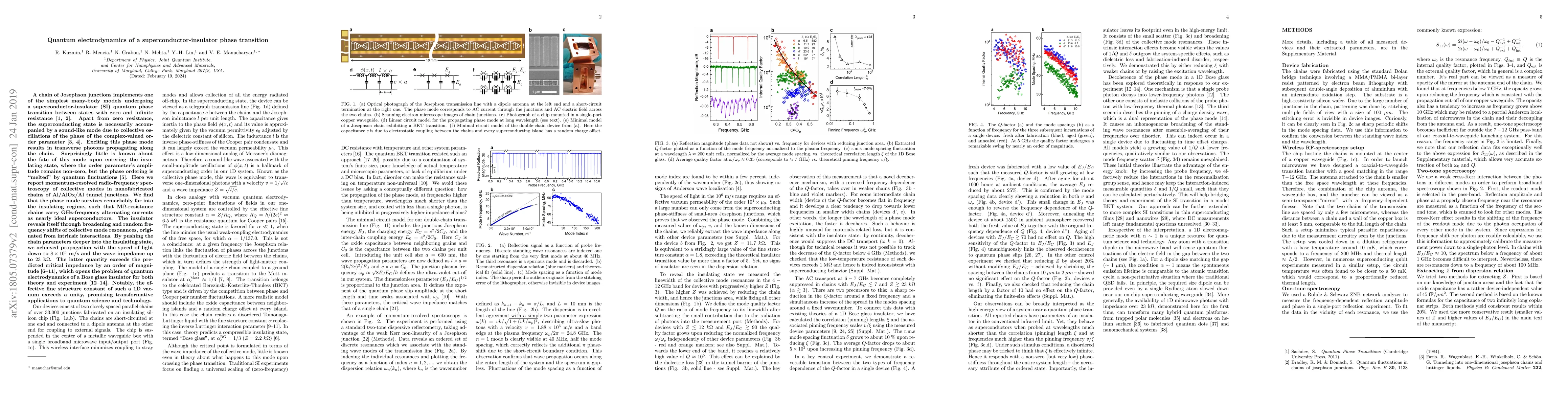 This paper investigates the quantum phase transition in a chain of Josephson junctions, finding that the superconducting phase mode persists into the insulating state, despite the presence of quantum fluctuations. The study reveals that the insulating phase is characterized by broadened and frequency-shifted collective mode resonances, and it demonstrates the propagation of GHz-frequency alternating currents with near-superconducting efficiency.