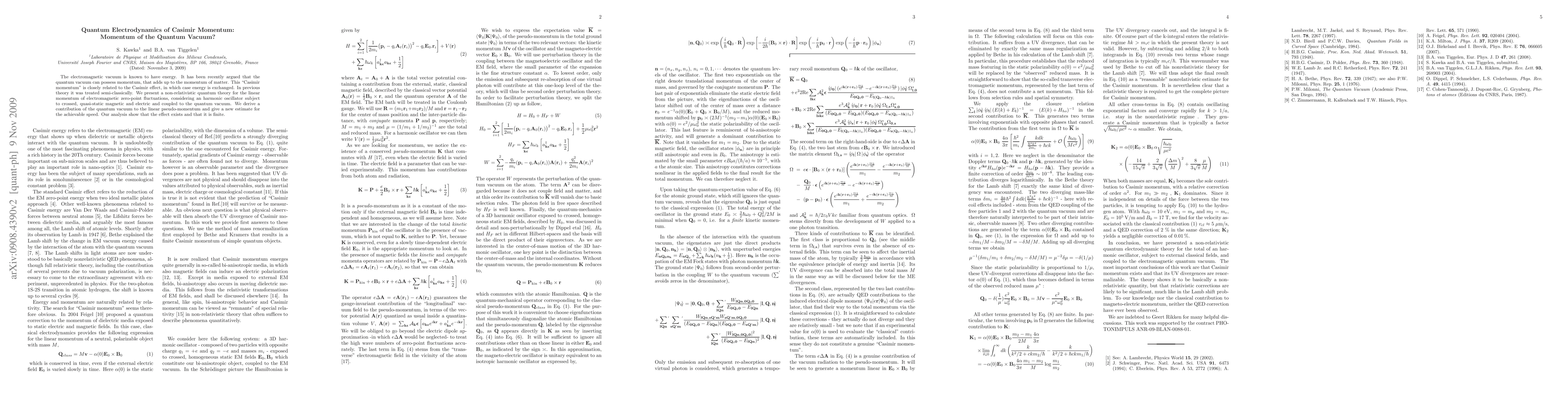 The electromagnetic vacuum is known to have energy. It has been recently argued that the quantum vacuum can possess momentum, that adds up to the momentum of matter. This ``Casimir momentum'' is closely related to the Casimir effect, in which case energy is exchanged. In previous theory it was treated semi-classically. We present a non-relativistic quantum theory for the linear momentum of electromagnetic zero-point fluctuations, considering an harmonic oscillator subject to crossed, quasi-static magnetic and electric and coupled to the quantum vacuum. We derive a contribution of the quantum vacuum to the linear pseudo-momentum and give a new estimate for the achievable speed. Our analysis show that the effect exists and that it is finite.