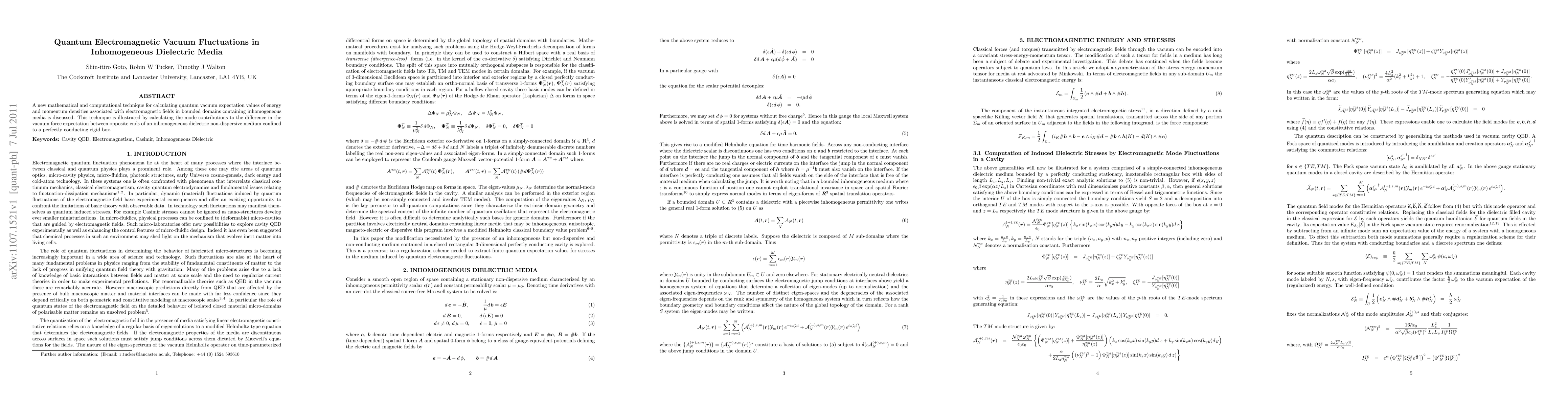 This paper introduces a novel method for computing quantum electromagnetic fluctuations in inhomogeneous dielectric media, focusing on the vacuum expectation values of energy and momentum densities. It demonstrates the technique by analyzing the vacuum force difference in a non-dispersive medium within a perfectly conducting box.