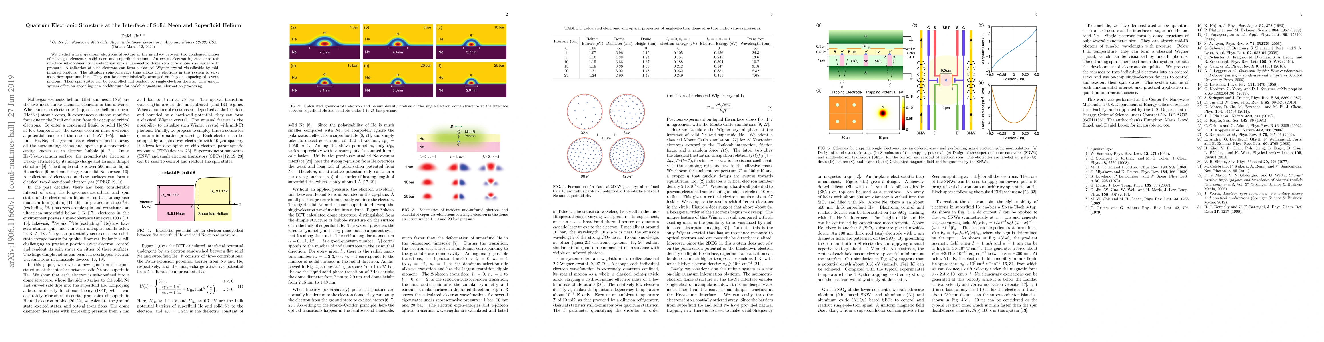 This research predicts a novel quantum electronic structure at the interface between solid neon and superfluid helium, where injected electrons form a nanometric dome structure. These electrons exhibit long spin-coherence times and can be arranged and manipulated for scalable quantum information processing.