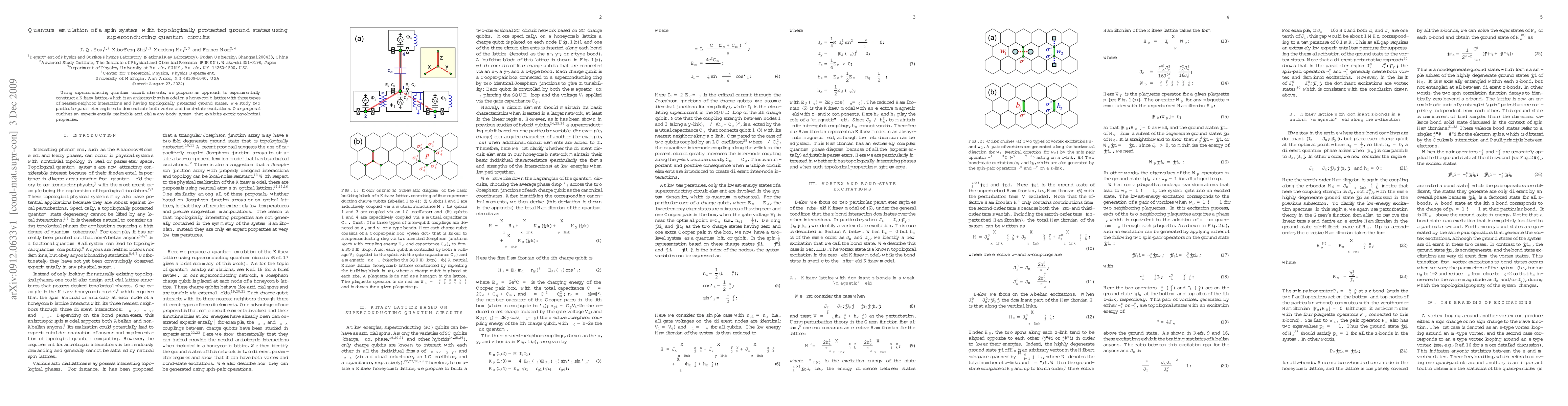 This paper proposes a method to emulate a Kitaev lattice using superconducting quantum circuits, aiming to create a topologically protected spin system with exotic ground states. The study demonstrates vortex and bond-state excitations in two parameter regimes, showcasing the potential for experimentally realizing topological properties in artificial many-body systems.