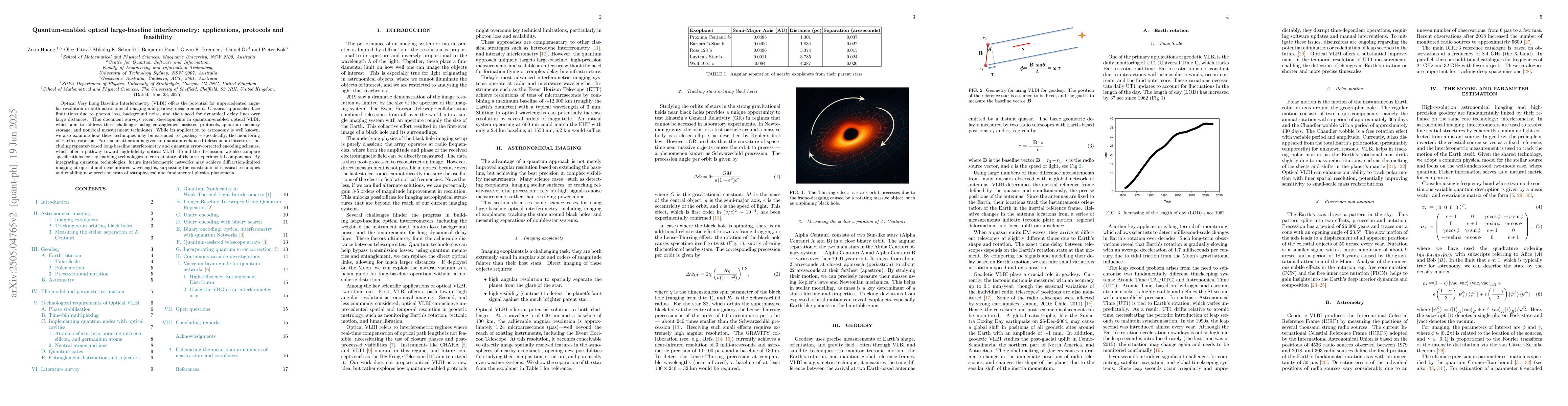 This paper surveys recent advancements in quantum-enabled optical Very Long Baseline Interferometry (VLBI) to address classical limitations, focusing on entanglement-assisted protocols and quantum memory storage for improved astronomical imaging and geodesy. It explores quantum-enhanced telescope architectures and compares them to current experimental technologies, suggesting a pathway to diffraction-limited imaging and new precision tests of fundamental physics.