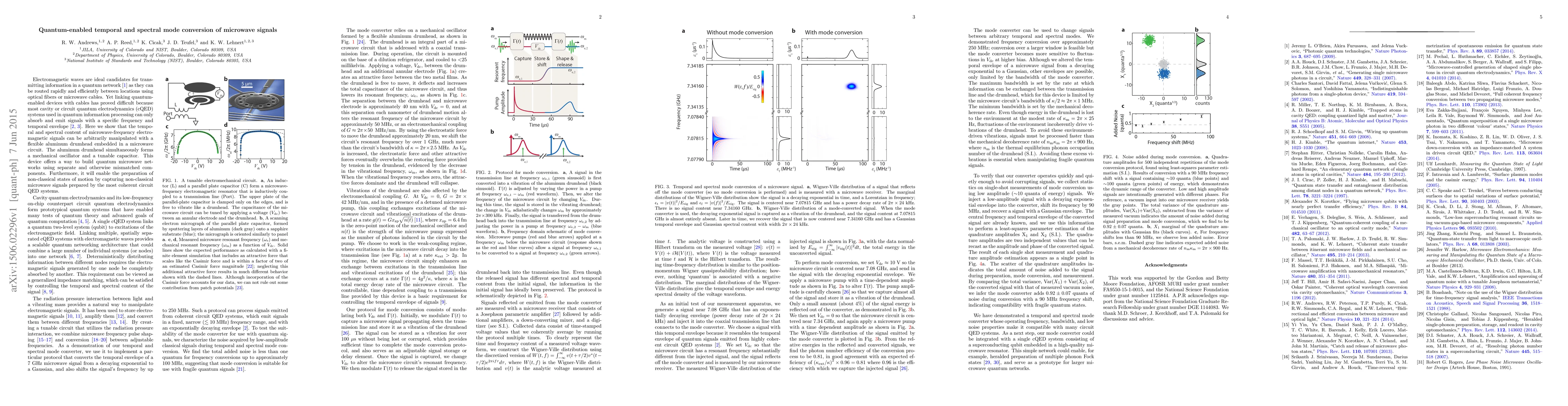 Electromagnetic waves are ideal candidates for transmitting information in a quantum network as they can be routed rapidly and efficiently between locations using optical fibers or microwave cables. Yet linking quantum-enabled devices with cables has proved difficult because most cavity or circuit quantum electrodynamics (cQED) systems used in quantum information processing can only absorb and emit signals with a specific frequency and temporal envelope. Here we show that the temporal and spectral content of microwave-frequency electromagnetic signals can be arbitrarily manipulated with a flexible aluminum drumhead embedded in a microwave circuit. The aluminum drumhead simultaneously forms a mechanical oscillator and a tunable capacitor. This device offers a way to build quantum microwave networks using separate and otherwise mismatched components. Furthermore, it will enable the preparation of non-classical states of motion by capturing non-classical microwave signals prepared by the most coherent circuit QED systems.