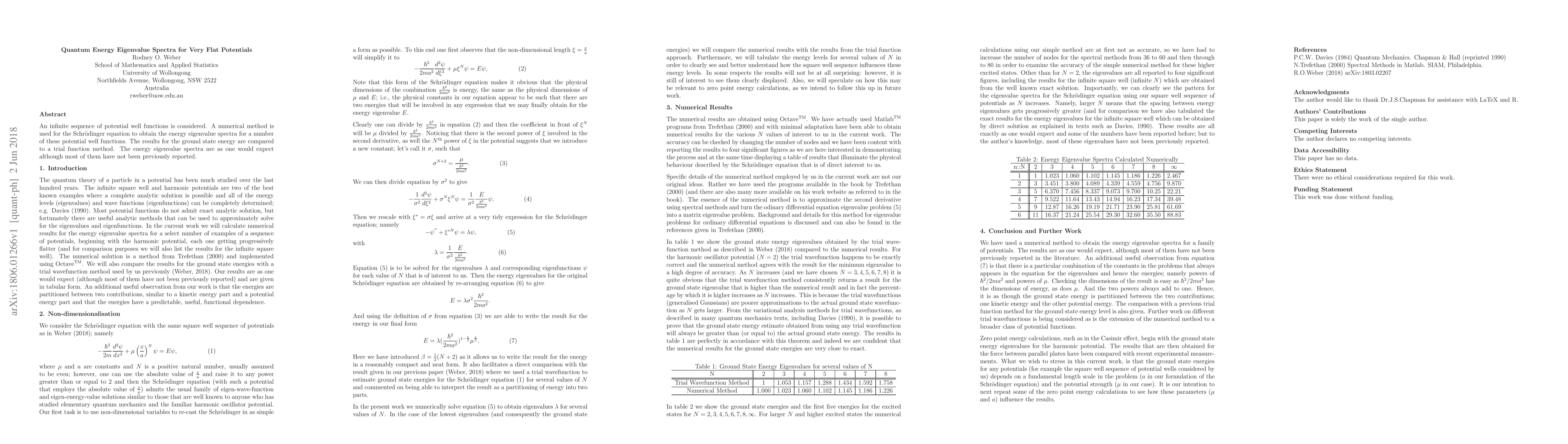 An infinite sequence of potential well functions is considered. A numerical method is used for the Schr$\ddot{\text{o}}$dinger equation to obtain the energy eigenvalue spectra for a number of these potential well functions. The results for the ground state energy are compared to a trial function method. The energy eigenvalue spectra are as one would expect although most of them have not been previously reported.