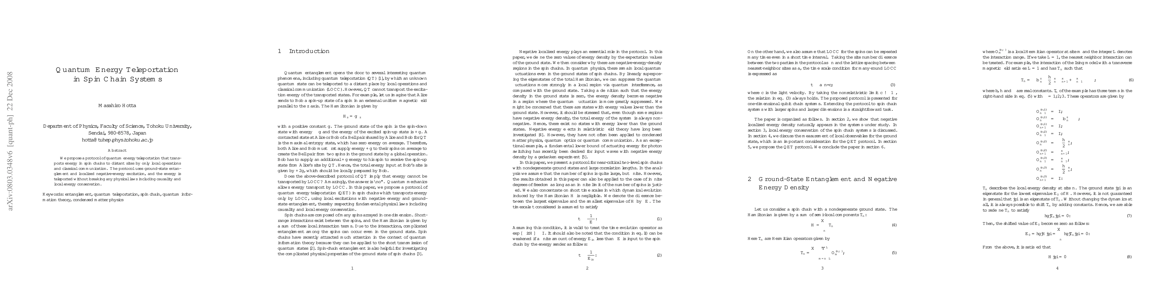 This paper proposes a protocol for quantum energy teleportation in spin chain systems, utilizing ground-state entanglement and negative energy density regions, to transport energy via local operations and classical communication without violating causality or local energy conservation, significantly reducing dissipation.