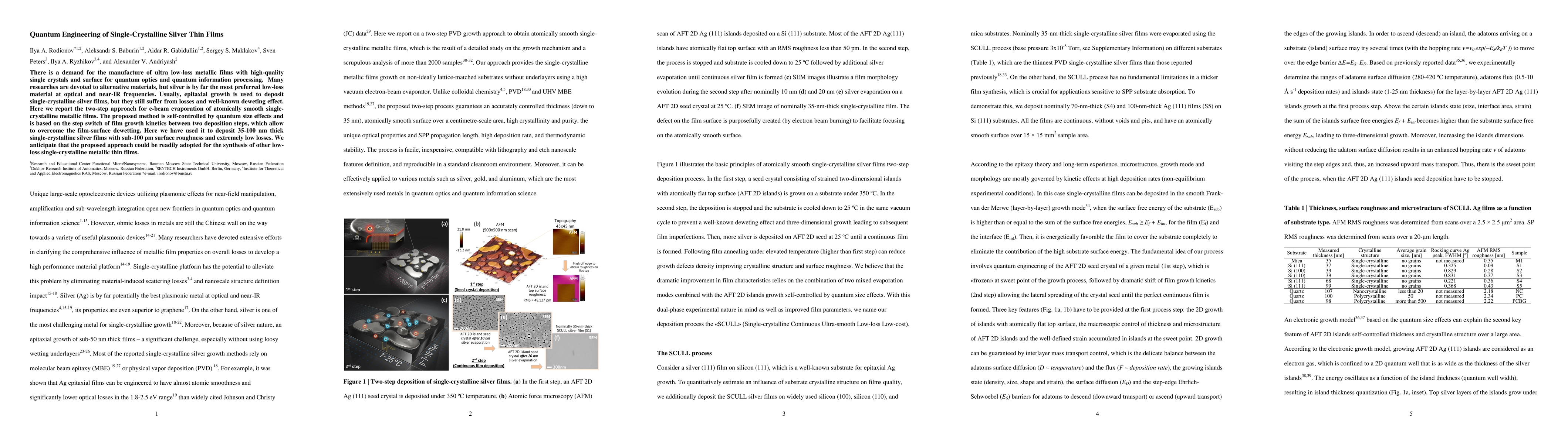 This paper presents a novel two-step e-beam evaporation method for fabricating ultra-low loss, atomically smooth single-crystalline silver thin films, overcoming traditional dewetting issues to achieve sub-100 pm surface roughness and minimal losses. The technique is proposed to potentially be adaptable for creating other low-loss metallic films.