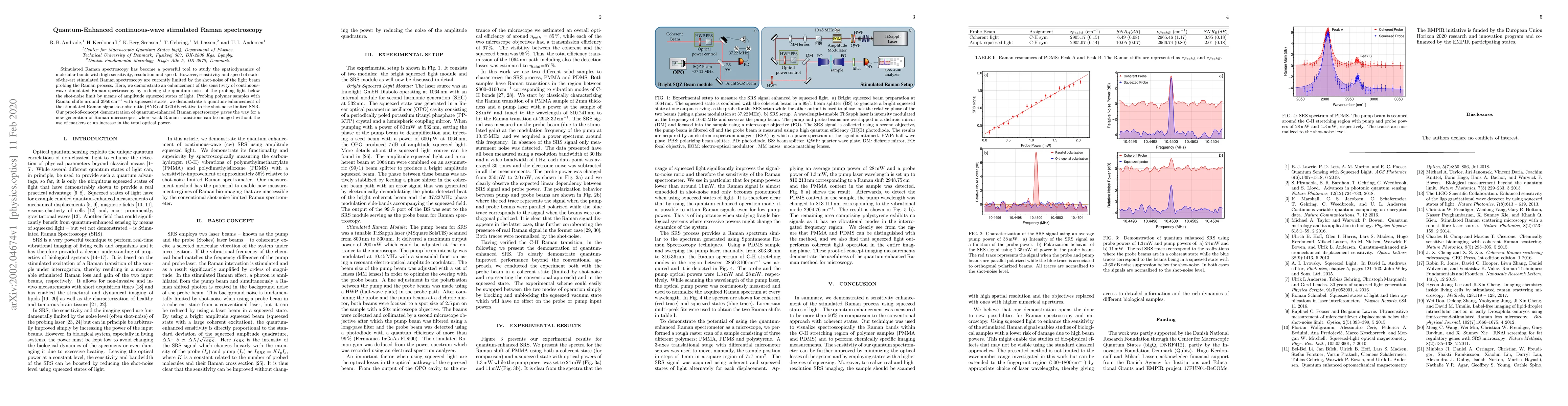 This research demonstrates a quantum-enhanced continuous-wave stimulated Raman spectroscopy technique using amplitude squeezed states of light to surpass shot-noise limits, achieving a 3.60 dB SNR improvement in polymer samples, thus paving the way for advanced Raman microscopes capable of imaging weak transitions without markers or higher power.
