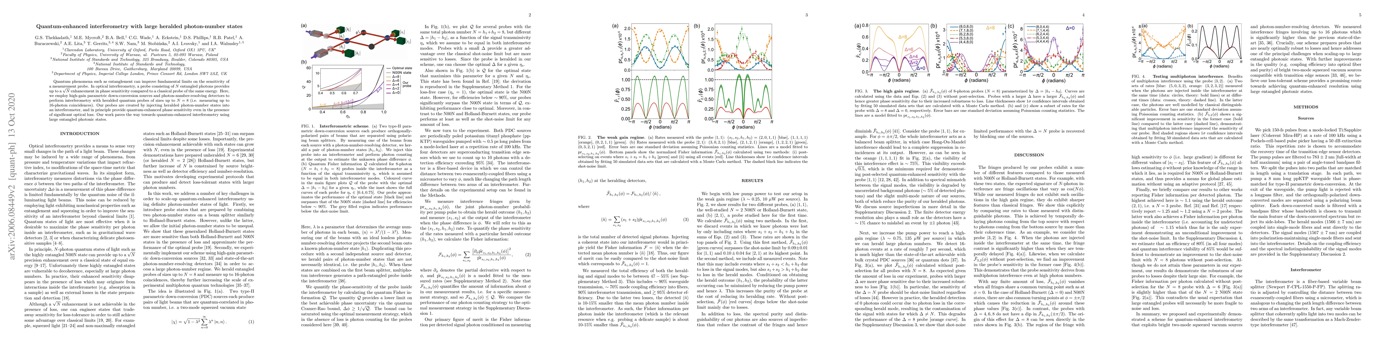 This paper demonstrates quantum-enhanced interferometry using large heralded photon-number states, achieving up to a $\sqrt{N}$ enhancement in phase sensitivity for $N=8$ photons, and suggests potential for improved sensitivity even with optical losses. The study employs high-gain parametric down-conversion and photon-number-resolving detectors to pave the way for future quantum-enhanced interferometry.
