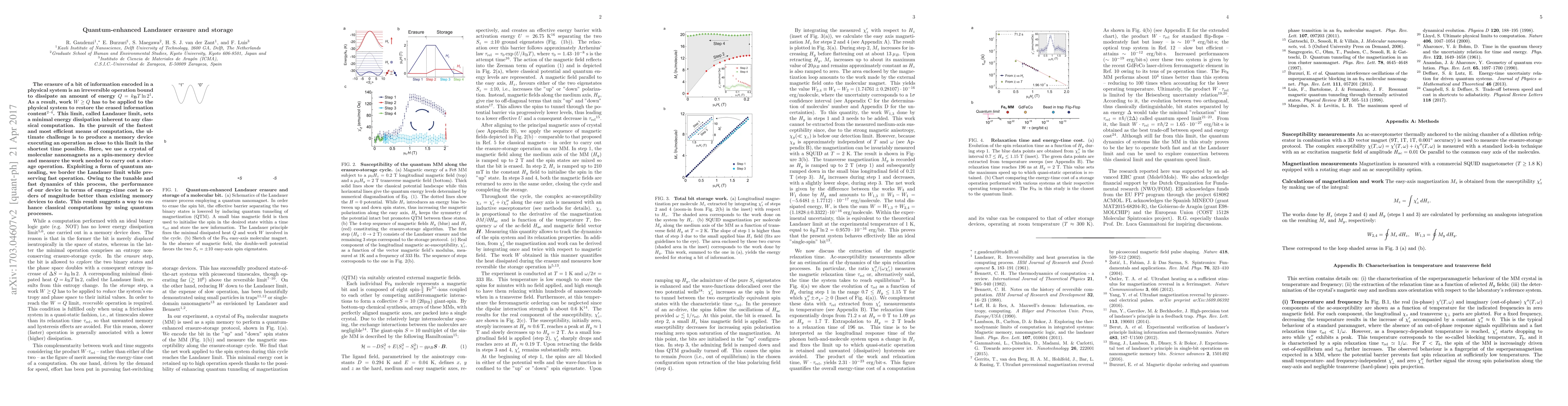This paper explores quantum-enhanced Landauer erasure and storage, demonstrating a molecular nanomagnet crystal that approaches the Landauer limit for minimal energy dissipation in computation. The device achieves superior energy-time efficiency through quantum annealing, suggesting quantum processes can significantly enhance classical computation.