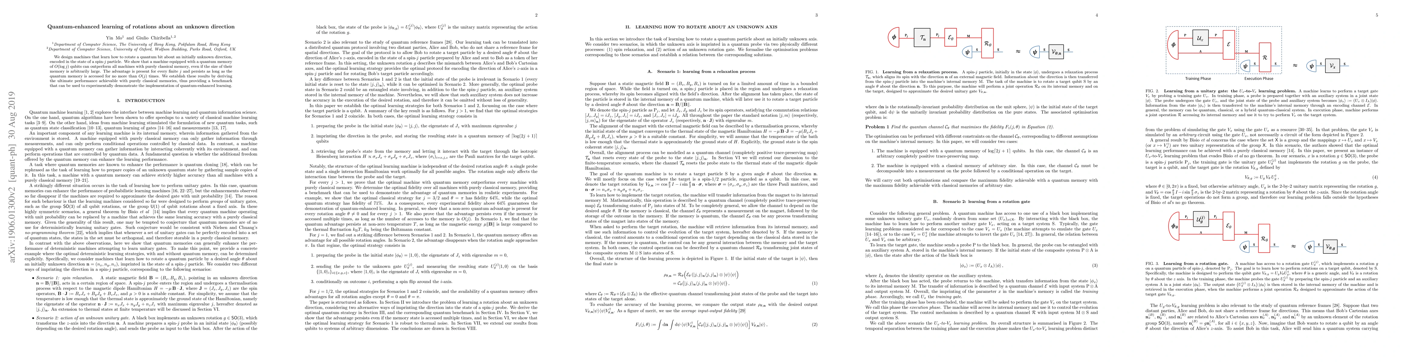 A machine learning algorithm can outperform classical algorithms for rotating a quantum bit about an unknown direction using a small quantum memory, even with arbitrarily large classical memories.