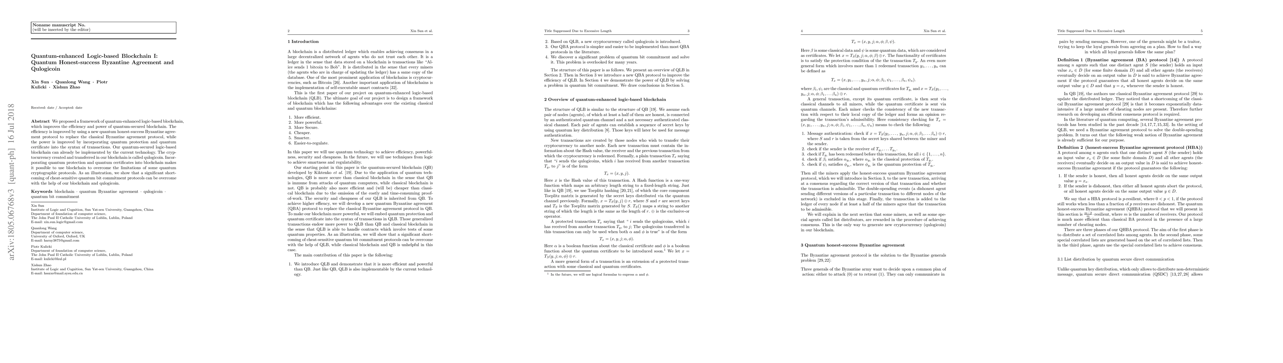 This paper introduces a quantum-enhanced logic-based blockchain framework that improves efficiency and security through a new quantum honest-success Byzantine agreement protocol and quantum protection in transactions. The cryptocurrency qulogicoin demonstrates the blockchain's potential to overcome limitations in existing quantum cryptographic protocols.
