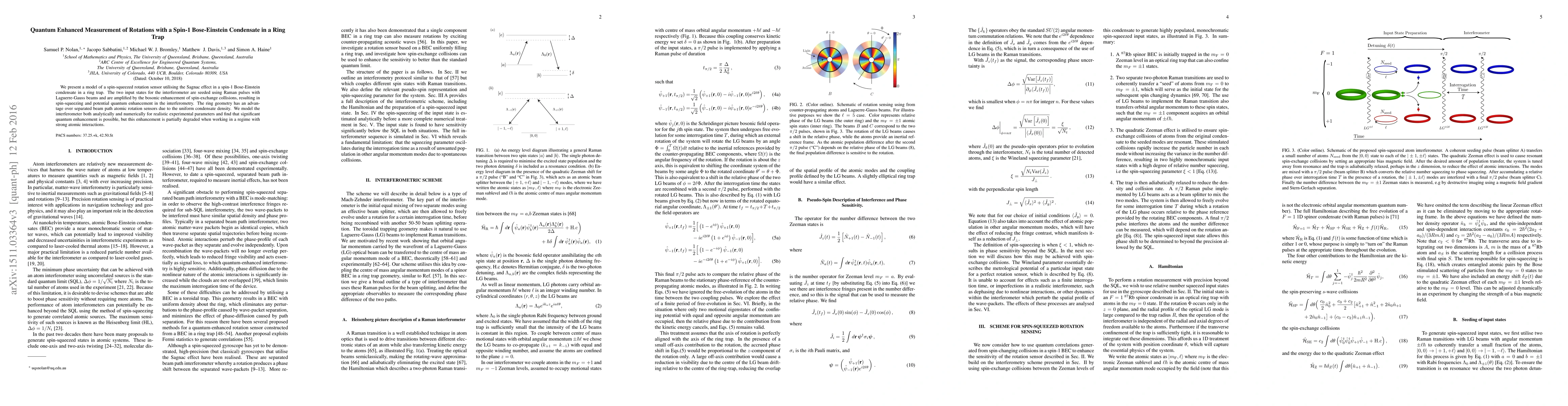 This paper proposes a quantum-enhanced rotation sensor using a spin-1 Bose-Einstein condensate in a ring trap, leveraging the Sagnac effect and spin-squeezing via Raman pulses. The model shows significant quantum enhancement potential, though strong atomic interactions partially degrade this effect.