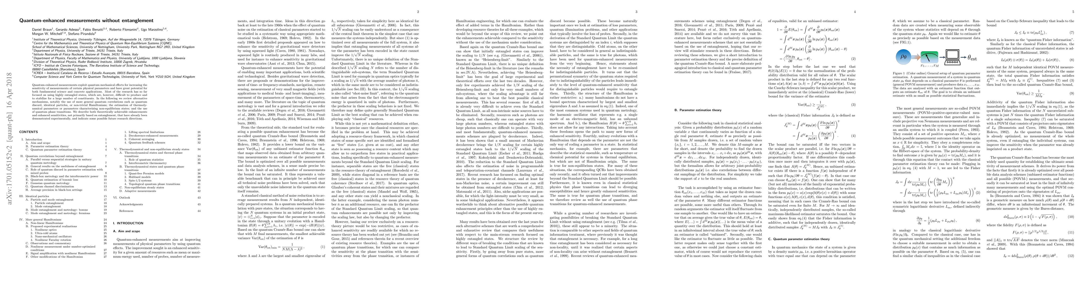 Quantum-enhanced measurements exploit quantum mechanical effects for increasing the sensitivity of measurements of certain physical parameters and have great potential for both fundamental science and concrete applications. Most of the research has so far focused on using highly entangled states, which are, however, difficult to produce and to stabilize for a large number of constituents. In the following we review alternative mechanisms, notably the use of more general quantum correlations such as quantum discord, identical particles, or non-trivial hamiltonians; the estimation of thermodynamical parameters or parameters characterizing non-equilibrium states; and the use of quantum phase transitions. We describe both theoretically achievable enhancements and enhanced sensitivities, not primarily based on entanglement, that have already been demonstrated experimentally, and indicate some possible future research directions.