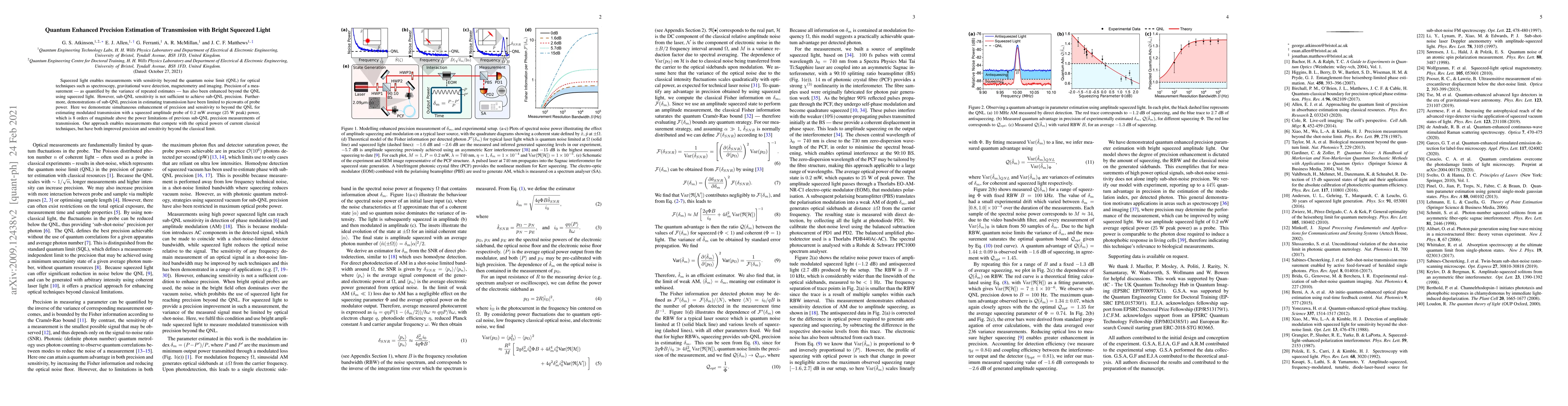 This paper demonstrates enhanced precision and sensitivity beyond the quantum noise limit for estimating modulated transmission using bright squeezed light, achieving significant improvements in both sensitivity and probe power compared to previous sub-quantum noise limit measurements.
