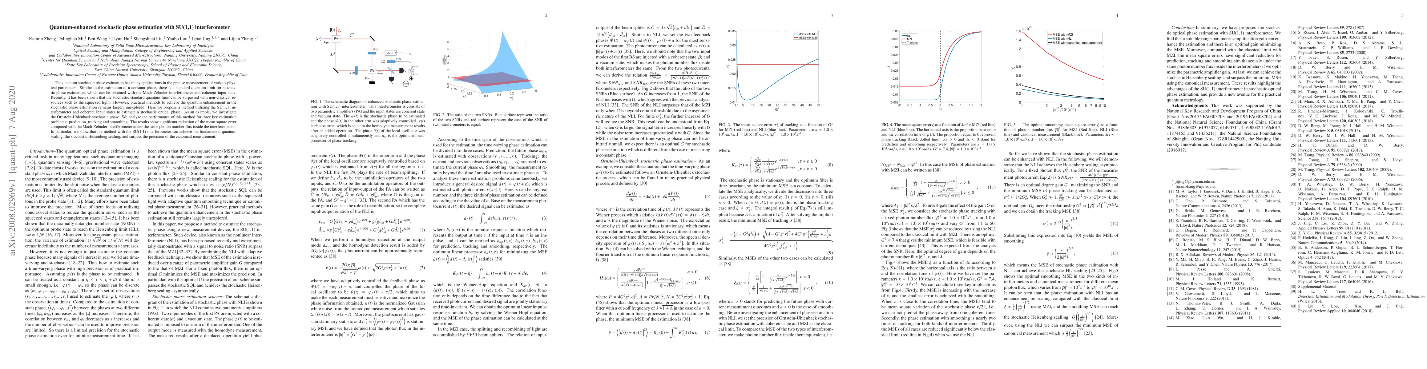 This paper proposes a quantum-enhanced method using an SU(1,1) interferometer for stochastic phase estimation, demonstrating significant improvements over the standard Mach-Zehnder interferometer. The SU(1,1) interferometer achieves fundamental quantum scaling and surpasses the precision of canonical measurements, particularly for prediction, tracking, and smoothing tasks.
