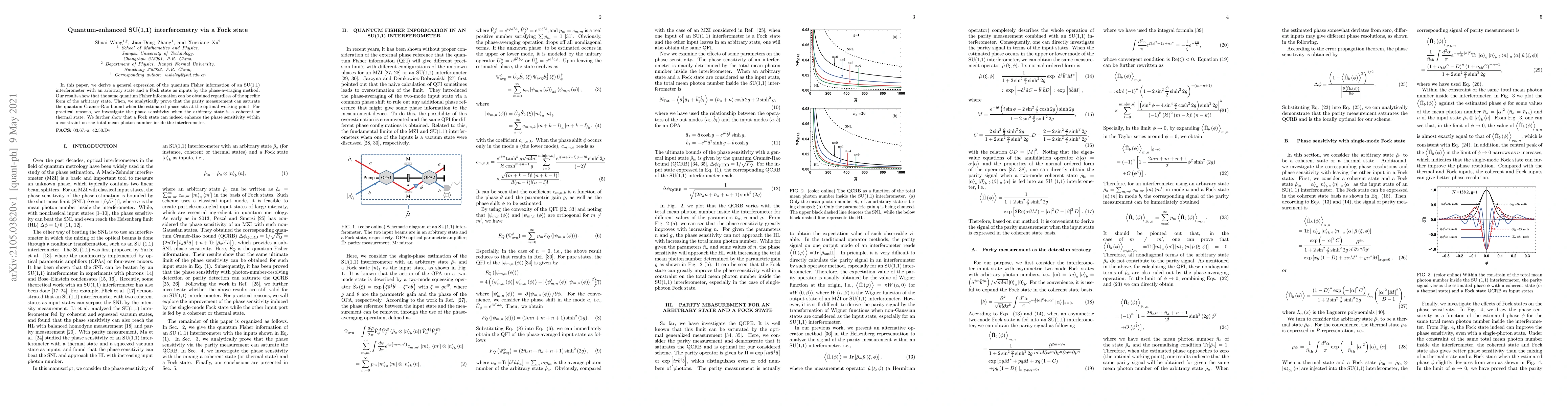 In this paper, we derive a general expression of the quantum Fisher information of an SU(1,1) interferometer with an arbitrary state and a Fock state as inputs by the phase-averaging method. Our results show that the same quantum Fisher information can be obtained regardless of the specific form of the arbitrary state. Then, we analytically prove that the parity measurement can saturate the quantum Cramer-Rao bound when the estimated phase sits at the optimal working point. For practical reasons, we investigate the phase sensitivity when the arbitrary state is a coherent or thermal state. We further show that a Fock state can indeed enhance the phase sensitivity within a constraint on the total mean photon number inside the interferometer.