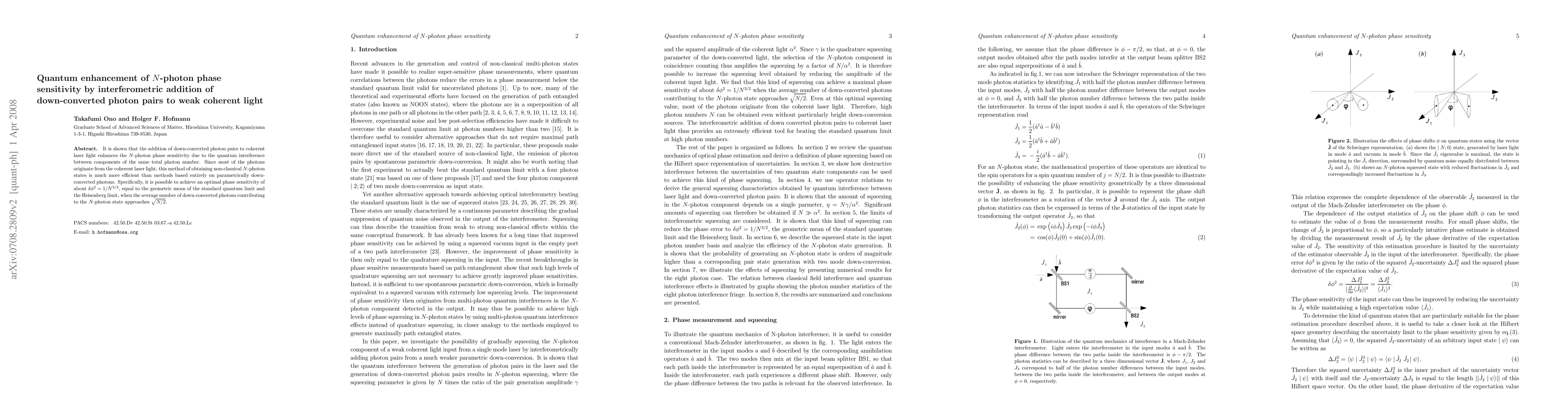 This paper demonstrates that combining down-converted photon pairs with coherent laser light enhances N-photon phase sensitivity through quantum interference, achieving optimal phase sensitivity of delta phi^2=1/N^(3/2) when the average number of down-converted photons is (N/2)^(1/2). This method is more efficient than using only parametrically down-converted photons.
