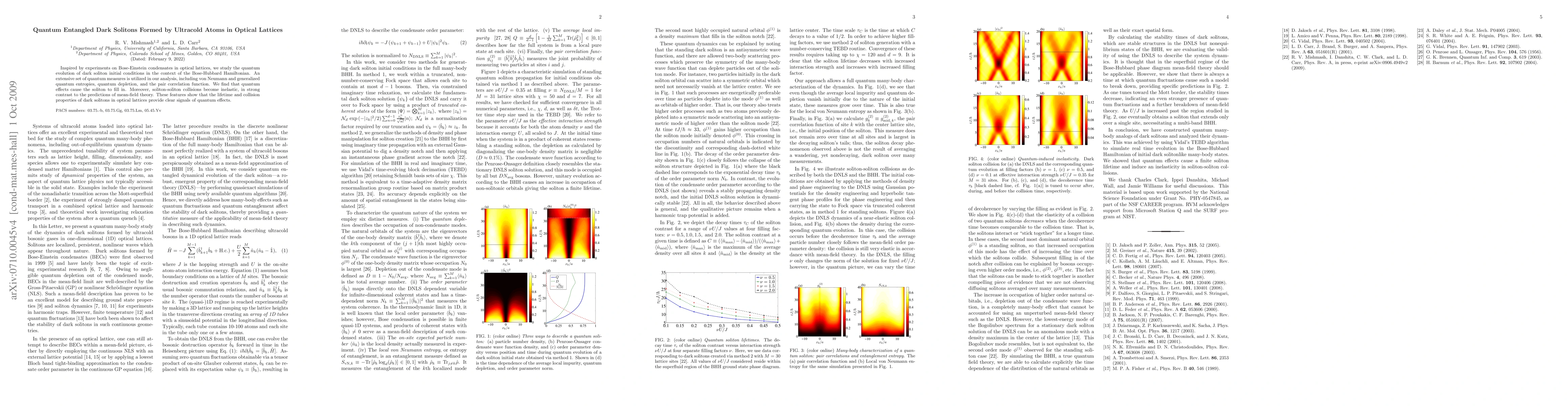 This paper investigates the quantum evolution of dark solitons in Bose-Einstein condensates within optical lattices, revealing that quantum effects cause solitons to fill in and their collisions to become inelastic, contrasting mean-field theory predictions and highlighting quantum influences on soliton dynamics.