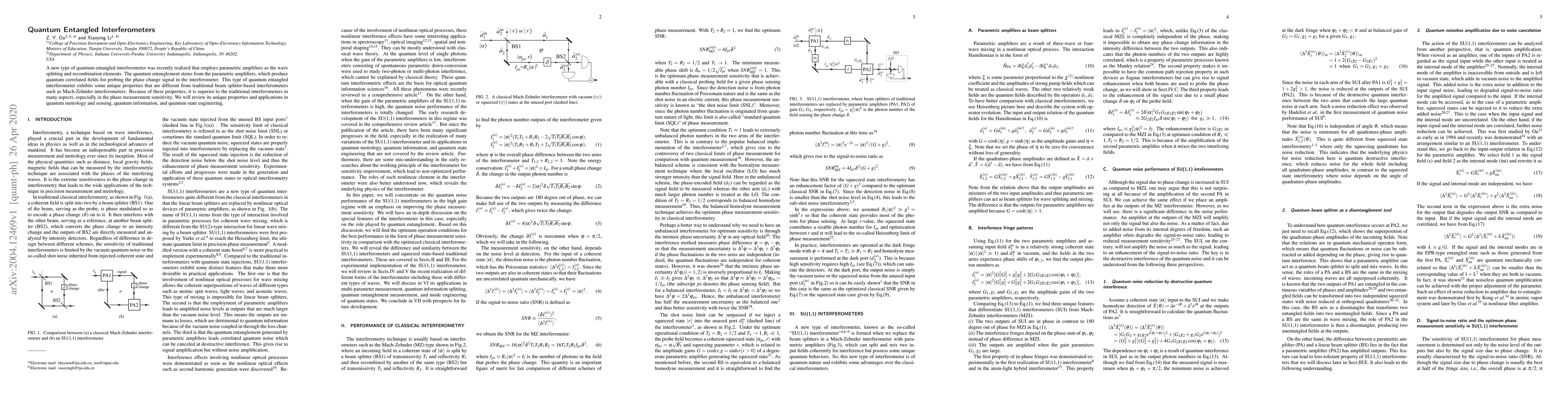 Researchers have developed a new type of quantum entangled interferometer that uses parametric amplifiers for wave splitting and recombination, offering improved phase measurement sensitivity compared to traditional beam splitter-based interferometers.