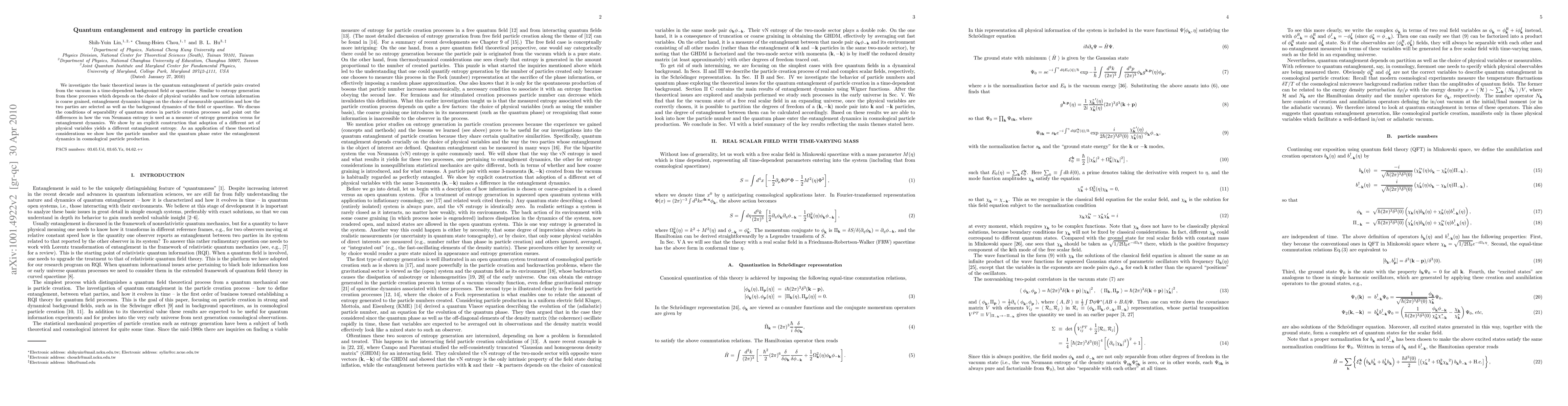 This paper explores the relationship between quantum entanglement and entropy in particle creation from vacuum in dynamic fields or spacetimes. It highlights how entanglement dynamics and entropy generation depend on the choice of measurable quantities and background dynamics, and demonstrates that different sets of physical variables yield different entanglement entropies.