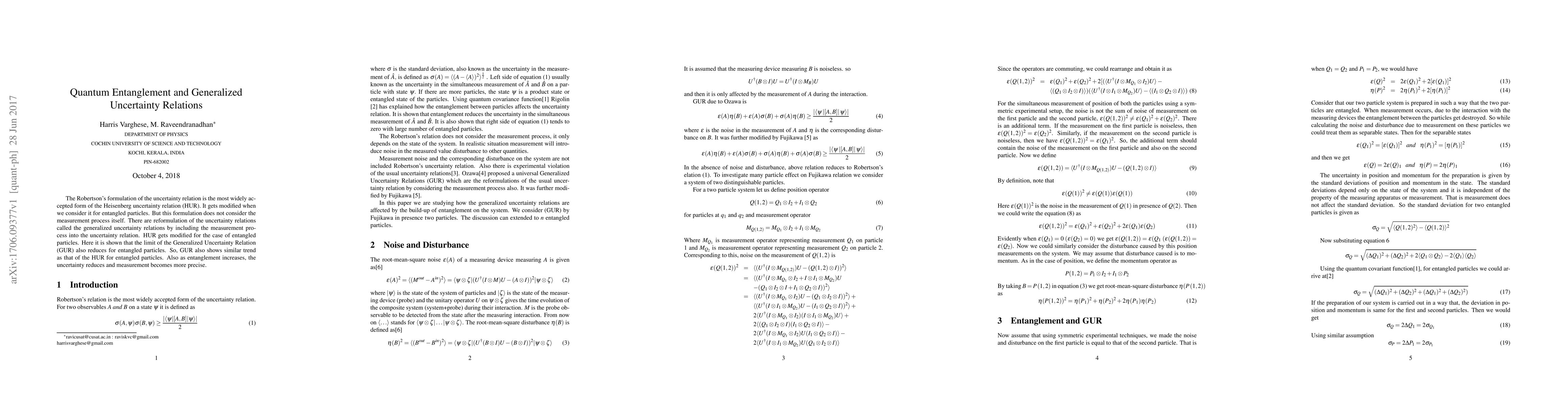 This paper examines the modification of the Heisenberg uncertainty relation (HUR) and generalized uncertainty relations (GUR) for entangled particles, showing that both HUR and GUR exhibit reduced limits with increasing entanglement, leading to more precise measurements.
