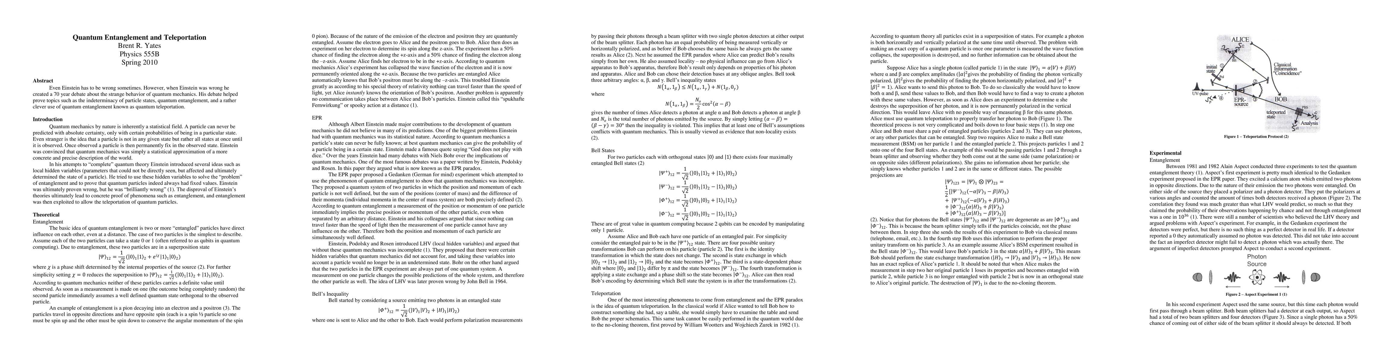 Even Einstein has to be wrong sometimes. However, when Einstein was wrong he created a 70 year debate about the strange behavior of quantum mechanics. His debate helped prove topics such as the indeterminacy of particle states, quantum entanglement, and a rather clever use of quantum entanglement known as quantum teleportation.