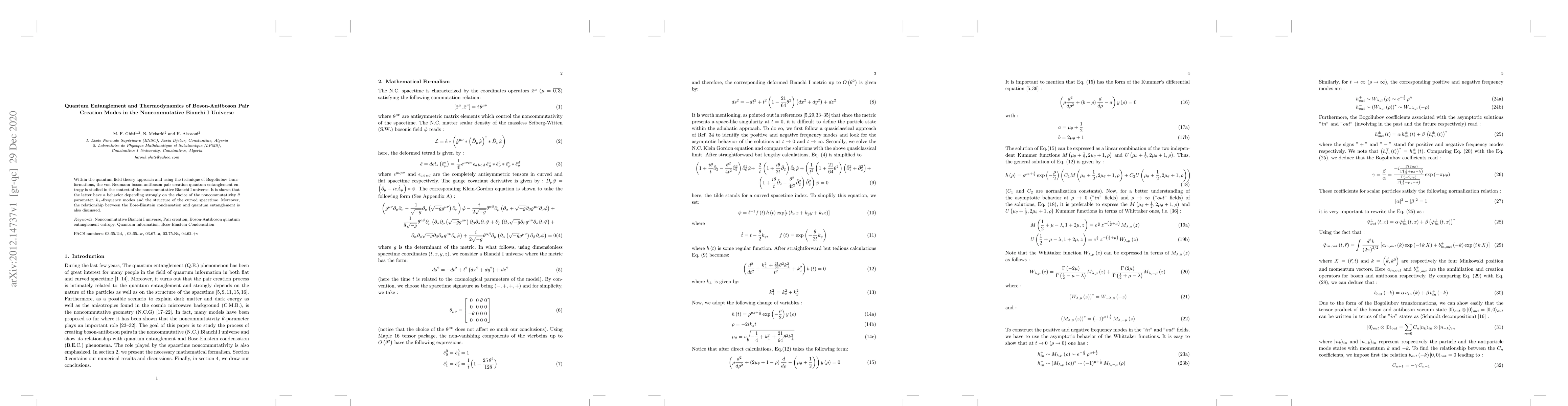 This paper investigates the quantum entanglement entropy of boson-antiboson pairs in a noncommutative Bianchi I universe, revealing strong dependence on noncommutativity parameters, frequency modes, and spacetime curvature. It also explores the connection between Bose-Einstein condensation and quantum entanglement.