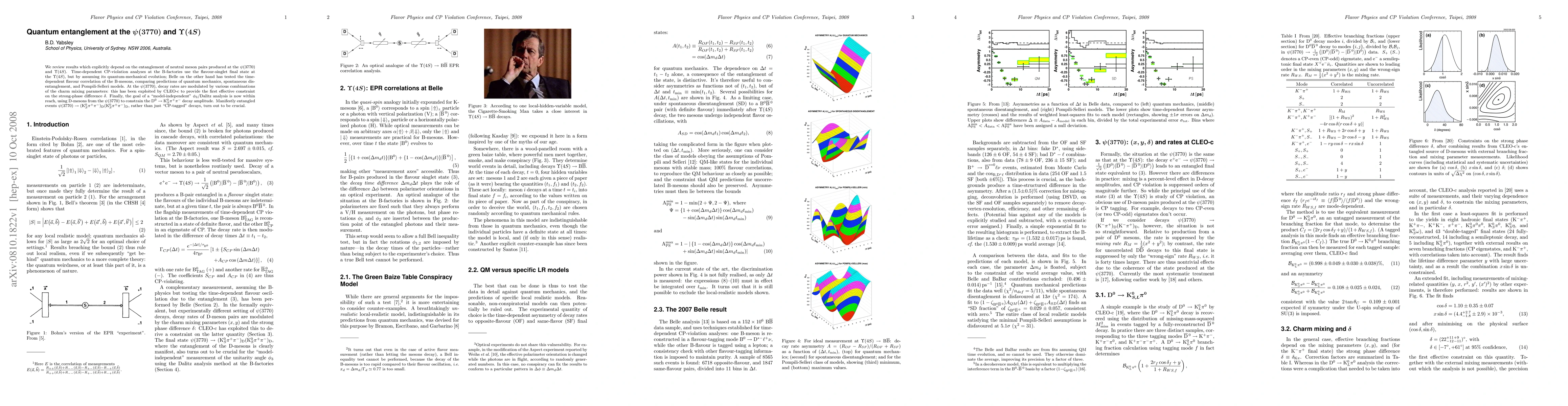 We review results which explicitly depend on the entanglement of neutral meson pairs produced at the psi(3770) and Upsilon(4S). Time-dependent CP-violation analyses at the B-factories use the flavour-singlet final state at the Upsilon(4S), but by assuming its quantum-mechanical evolution; Belle on the other hand has tested the time-dependent flavour correlation of the B-mesons, comparing predictions of quantum mechanics, spontaneous disentanglement, and Pompili-Selleri models. At the psi(3770), decay rates are modulated by various combinations of the charm mixing parameters: this has been exploited by CLEO-c to provide the first effective constraint on the strong-phase difference delta. Finally, the goal of a "model-independent" phi_3/Dalitz analysis is now within reach, using D-mesons from the psi(3770) to constrain the D0 -> K_S pi+ pi- decay amplitude. Manifestly entangled events psi(3770) -> (K_S pi+pi-)_D (K_S pi+ pi-)_D, rather than just "CP-tagged" decays, turn out to be crucial.