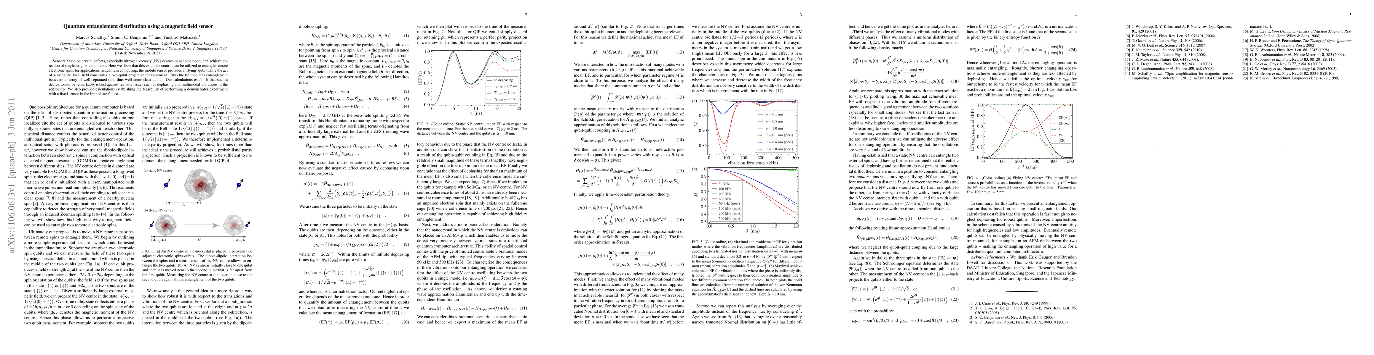 This paper demonstrates the use of NV centre sensors in nanodiamond to distribute quantum entanglement between remote electronic spins, proposing a "flying" qubit via a mobile sensor and a robust two-qubit measurement process. The study concludes that the proposed system is resilient to dephasing and vibrations, with a feasible demonstration experiment planned.