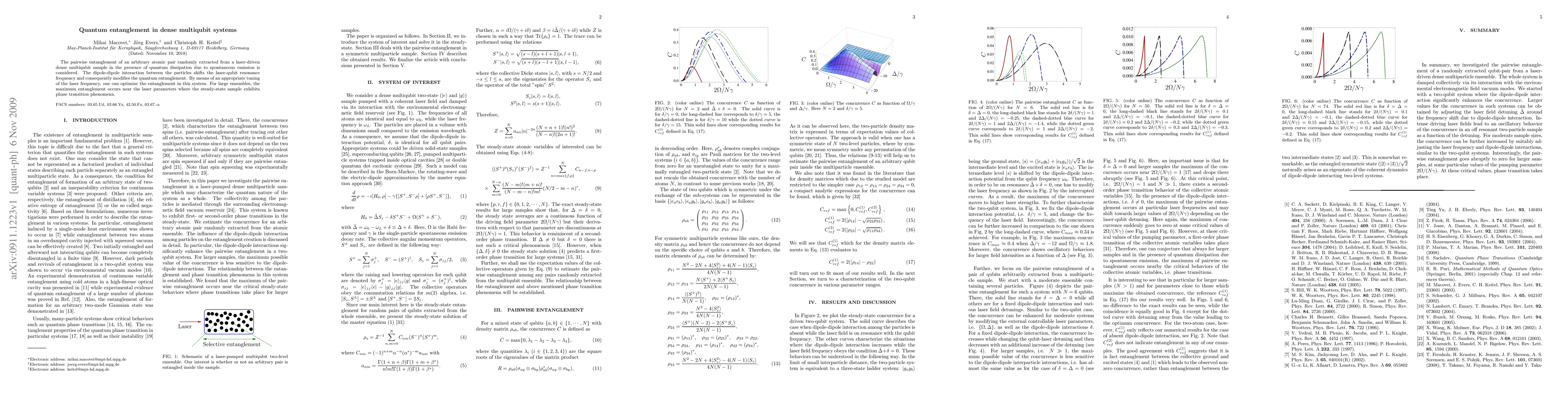 Researchers investigated quantum entanglement in dense multiqubit systems with a laser-driven sample, finding that tuning the laser frequency can optimize entanglement near phase transition phenomena.