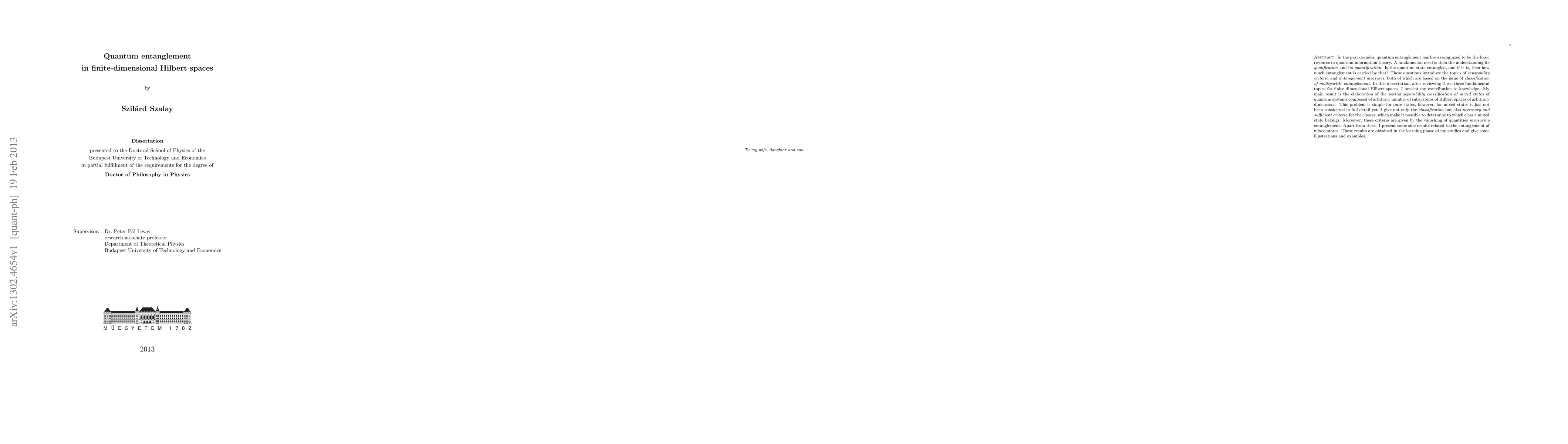 In the past decades, quantum entanglement has been recognized to be the basic resource in quantum information theory. A fundamental need is then the understanding its qualification and its quantification: Is the quantum state entangled, and if it is, then how much entanglement is carried by that? These questions introduce the topics of separability criteria and entanglement measures, both of which are based on the issue of classification of multipartite entanglement. In this dissertation, after reviewing these three fundamental topics for finite dimensional Hilbert spaces, I present my contribution to knowledge. My main result is the elaboration of the partial separability classification of mixed states of quantum systems composed of arbitrary number of subsystems of Hilbert spaces of arbitrary dimensions. This problem is simple for pure states, however, for mixed states it has not been considered in full detail yet. I give not only the classification but also necessary and sufficient criteria for the classes, which make it possible to determine to which class a mixed state belongs. Moreover, these criteria are given by the vanishing of quantities measuring entanglement. Apart from these, I present some side results related to the entanglement of mixed states. These results are obtained in the learning phase of my studies and give some illustrations and examples.