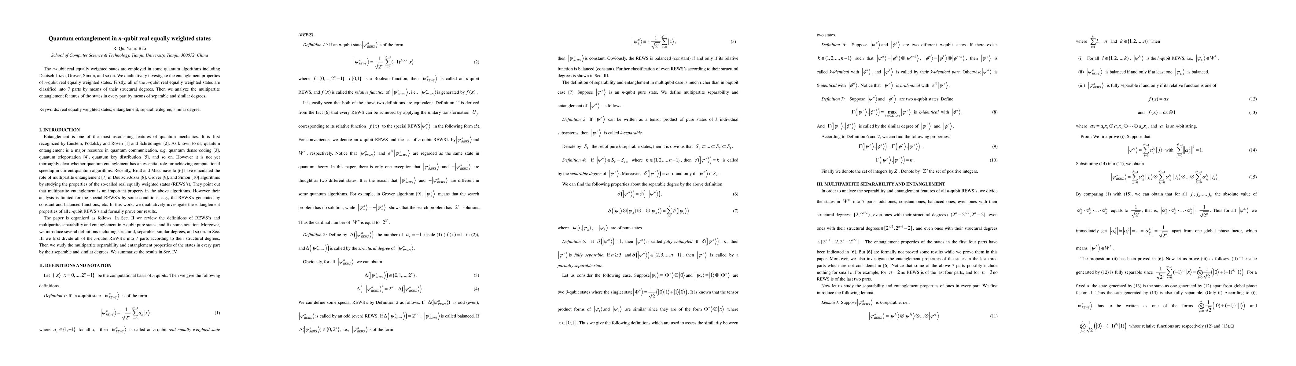 This paper classifies n-qubit real equally weighted states into seven categories based on their structural degrees and investigates their multipartite entanglement features using separable and similar degrees. The study aims to understand the entanglement properties relevant to quantum algorithms like Deutsch-Jozsa, Grover, and Simon.