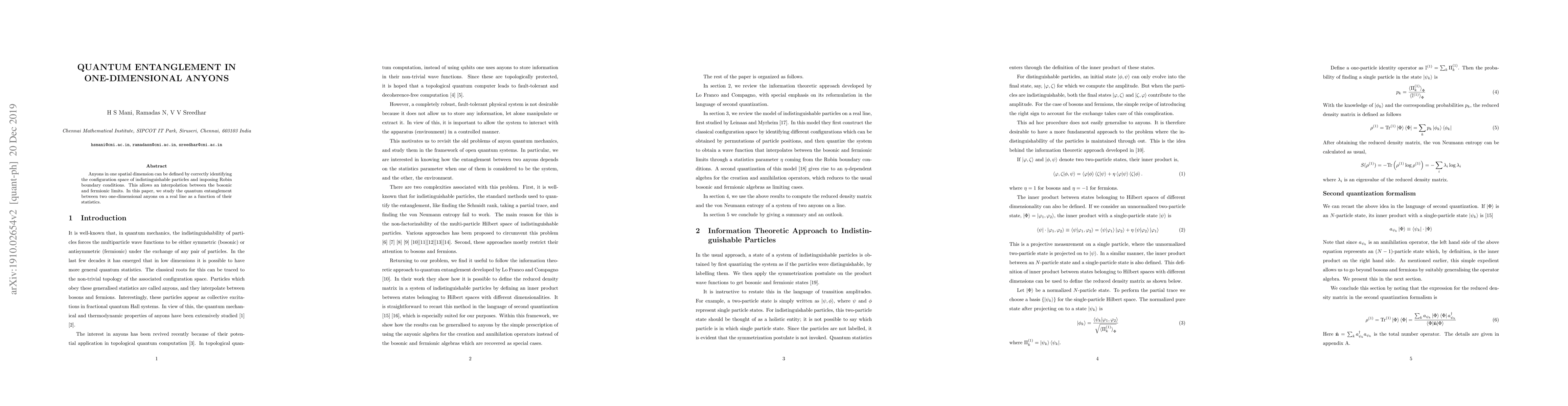 This paper explores quantum entanglement in one-dimensional anyons by defining them through Robin boundary conditions and examining how entanglement varies with their statistical properties, interpolating between bosonic and fermionic behaviors. The study focuses on the entanglement between two anyons on a real line.