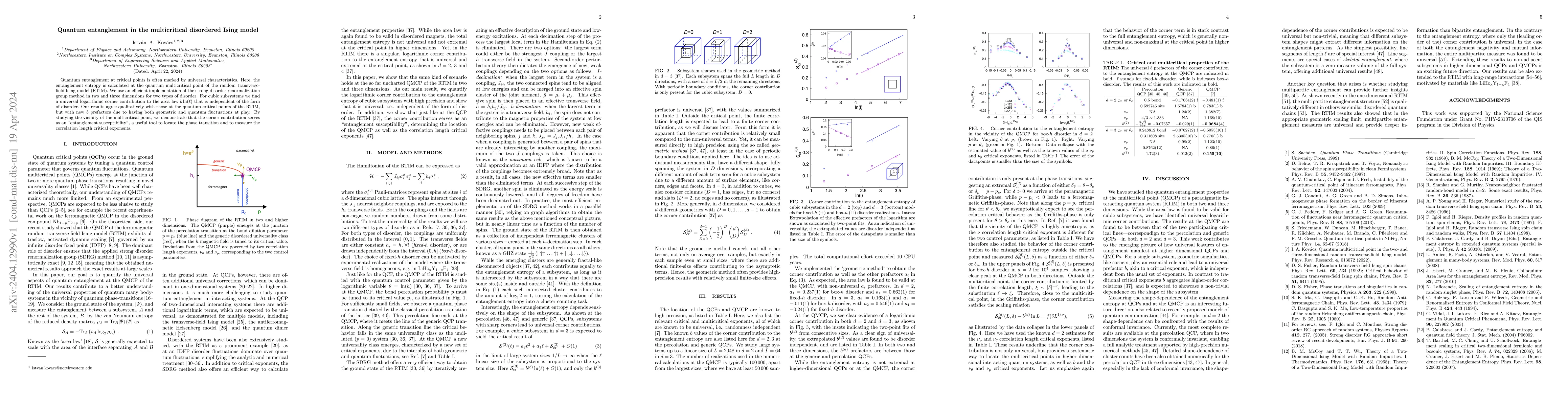This research distinguishes itself by identifying a universal logarithmic corner contribution to entanglement entropy at the quantum multicritical point of the RTIM, which serves as an 'entanglement susceptibility' for phase transition studies.