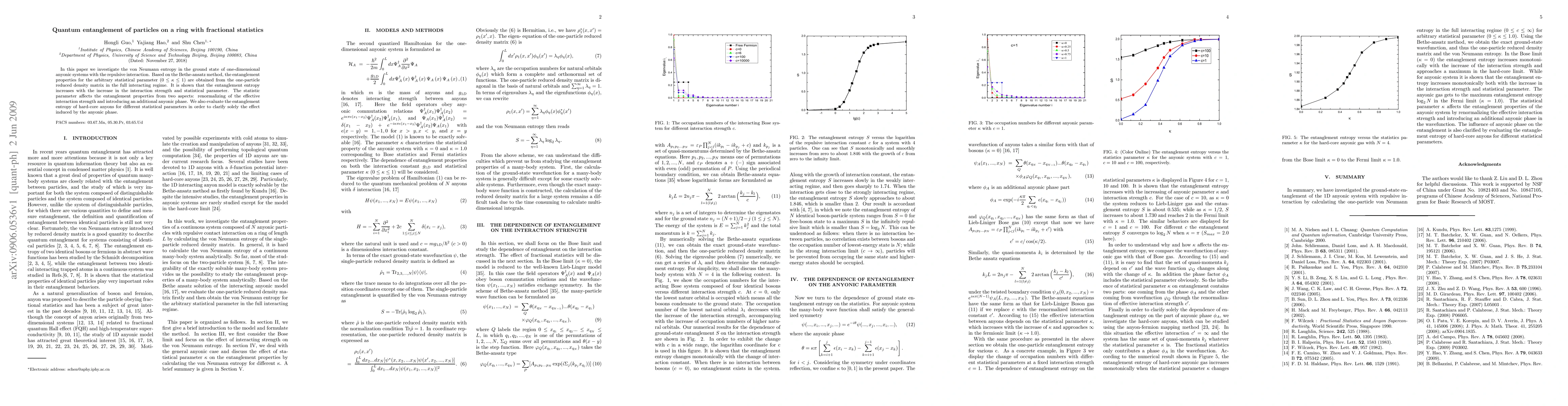 In this paper we investigate the von Neumann entropy in the ground state of one-dimensional anyonic systems with the repulsive interaction. Based on the Bethe-ansatz method, the entanglement properties for the arbitrary statistical parameter ($0\leq\kappa\leq1$) are obtained from the one-particle reduced density matrix in the full interacting regime. It is shown that the entanglement entropy increases with the increase in the interaction strength and statistical parameter. The statistic parameter affects the entanglement properties from two aspects: renormalizing of the effective interaction strength and introducing an additional anyonic phase. We also evaluate the entanglement entropy of hard-core anyons for different statistical parameters in order to clarify solely the effect induced by the anyonic phase.