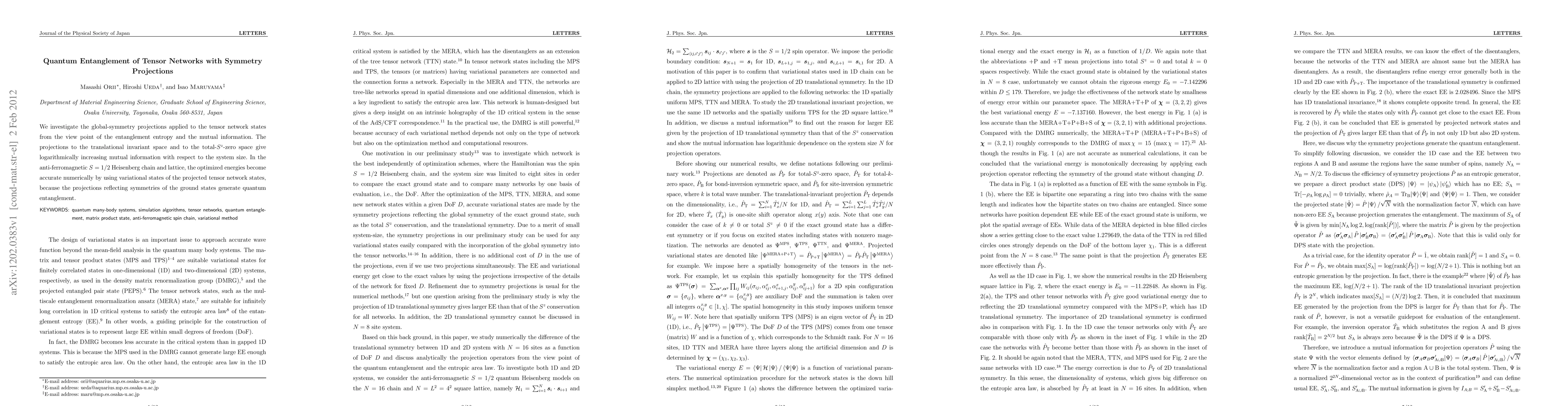 This paper explores how global-symmetry projections enhance tensor network states, showing logarithmically increasing mutual information and accurate variational energies in anti-ferromagnetic systems. The symmetry projections generate quantum entanglement, improving the description of ground states.