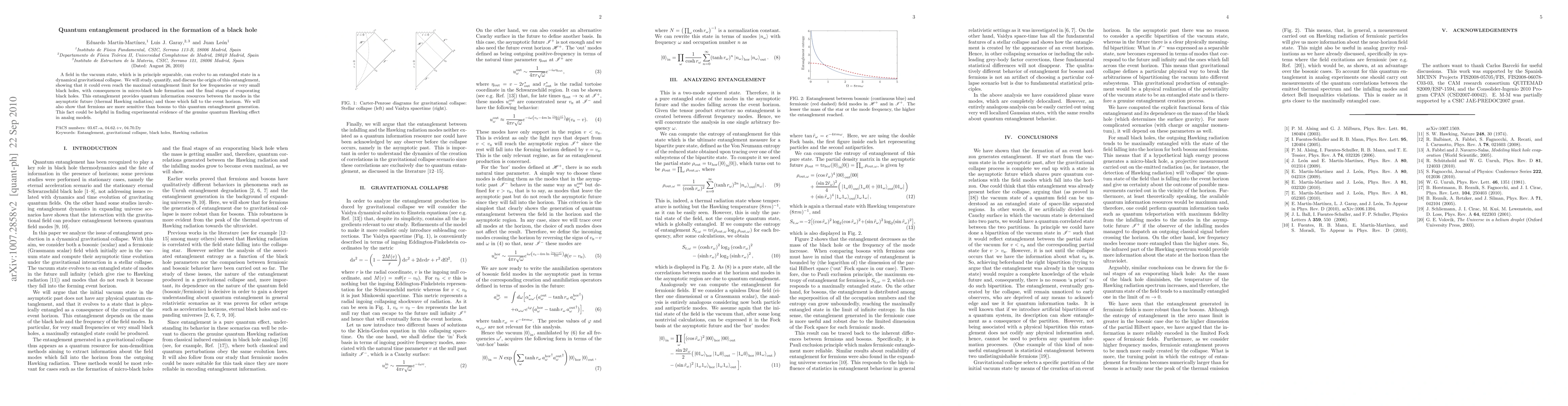 A field in the vacuum state, which is in principle separable, can evolve to an entangled state in a dynamical gravitational collapse. We will study, quantify, and discuss the origin of this entanglement, showing that it could even reach the maximal entanglement limit for low frequencies or very small black holes, with consequences in micro-black hole formation and the final stages of evaporating black holes. This entanglement provides quantum information resources between the modes in the asymptotic future (thermal Hawking radiation) and those which fall to the event horizon. We will also show that fermions are more sensitive than bosons to this quantum entanglement generation. This fact could be helpful in finding experimental evidence of the genuine quantum Hawking effect in analog models.
