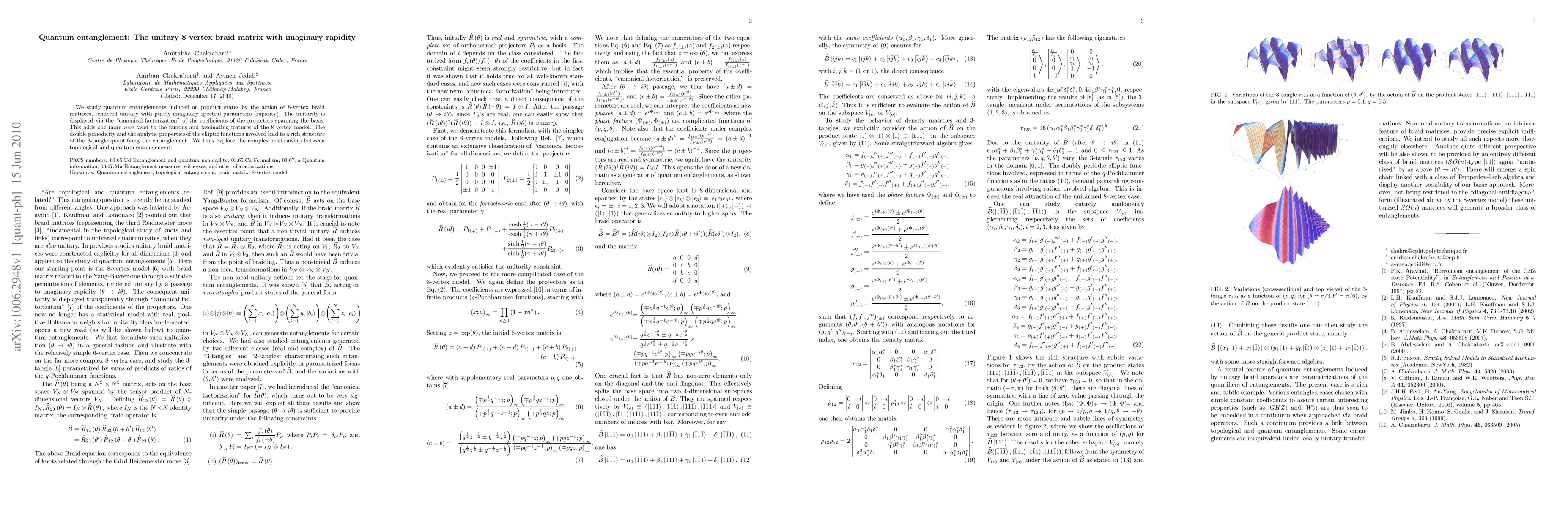 This paper studies how 8-vertex braid matrices with imaginary spectral parameters affect entanglement in quantum systems, revealing a rich structure of entanglement quantification through complex relationships between topological and quantum entanglement.