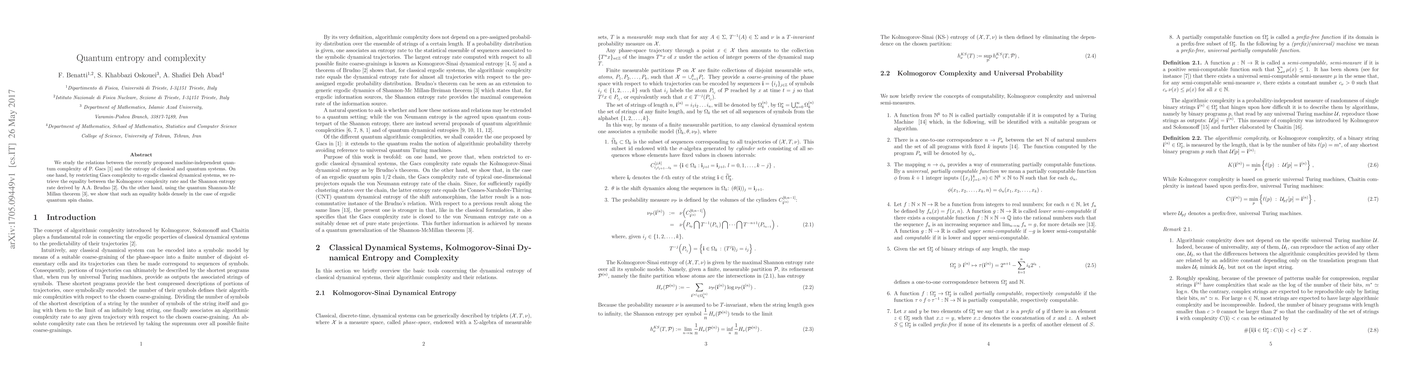 This paper studies the relationship between quantum complexity and entropy in classical and quantum systems, finding an equality between these two concepts in ergodic systems.
