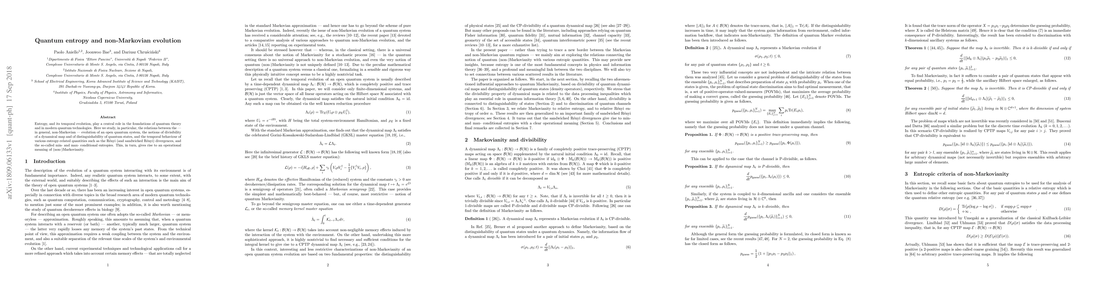 This paper investigates the non-Markovian evolution of open quantum systems, exploring connections between dynamical map divisibility, state distinguishability, and the temporal behavior of entropy-related quantities like Renyi divergences and conditional entropies, thereby defining operational criteria for (non-)Markovianity.