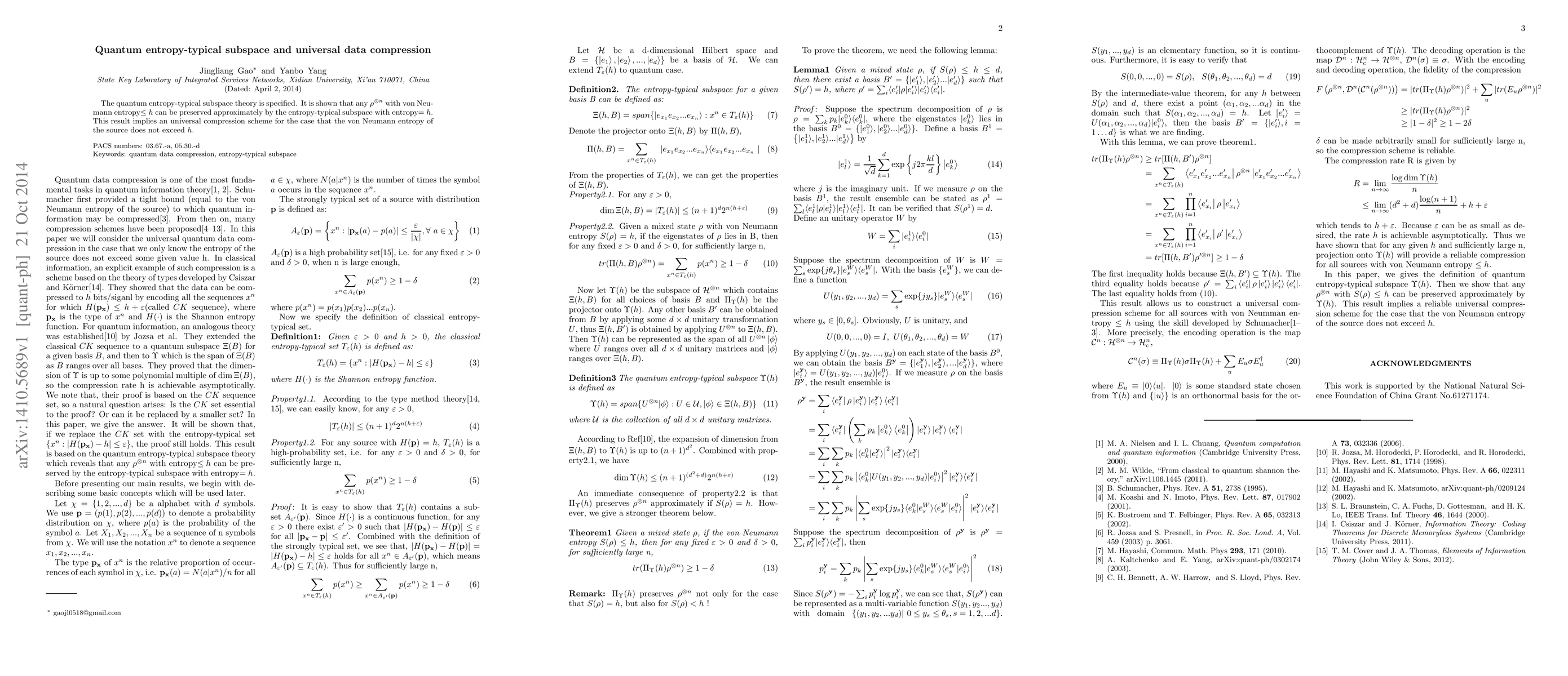 The quantum entropy-typical subspace theory is specified. It is shown that any mixed state with von Neumann entropy less than h can be preserved approximately by the entropy-typical subspace with entropy= h. This result implies an universal compression scheme for the case that the von Neumann entropy of the source does not exceed h.