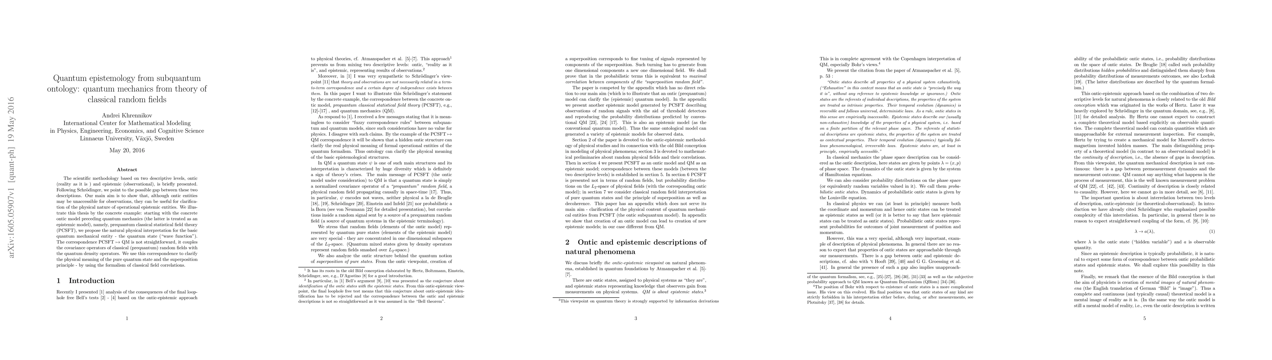 This paper explores quantum epistemology through subquantum ontology, proposing that classical random fields can provide a clearer physical interpretation of quantum mechanics. It demonstrates how prequantum classical statistical field theory (PCSFT) can naturally interpret quantum states and the superposition principle via classical field correlations.
