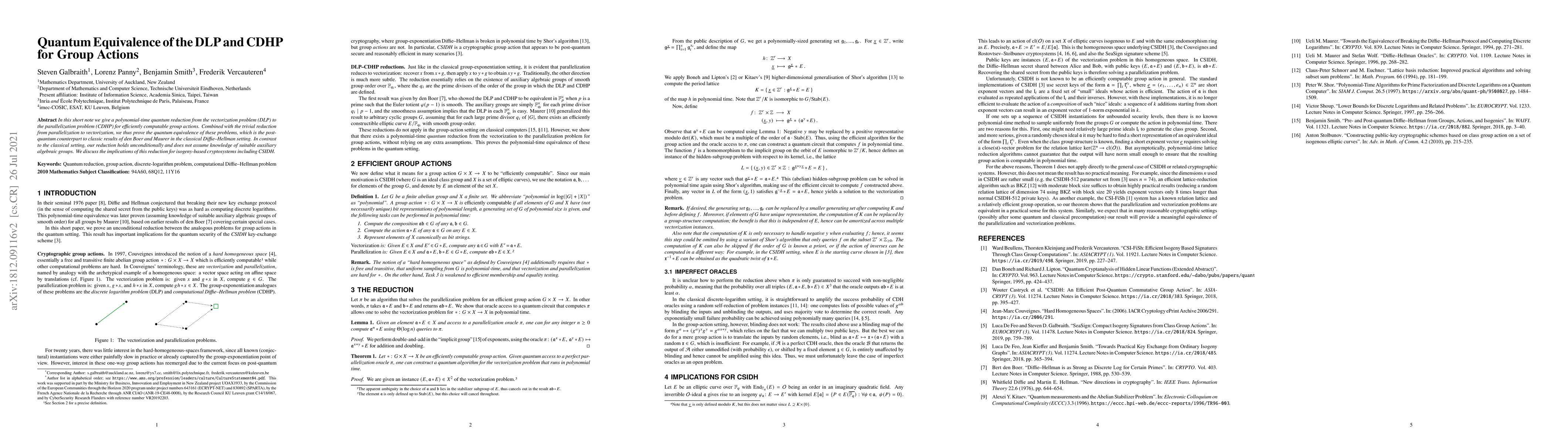 In this short note we give a polynomial-time quantum reduction from the vectorization problem (DLP) to the parallelization problem (CDHP) for group actions. Combined with the trivial reduction from par-allelization to vectorization, we thus prove the quantum equivalence of both problems.
