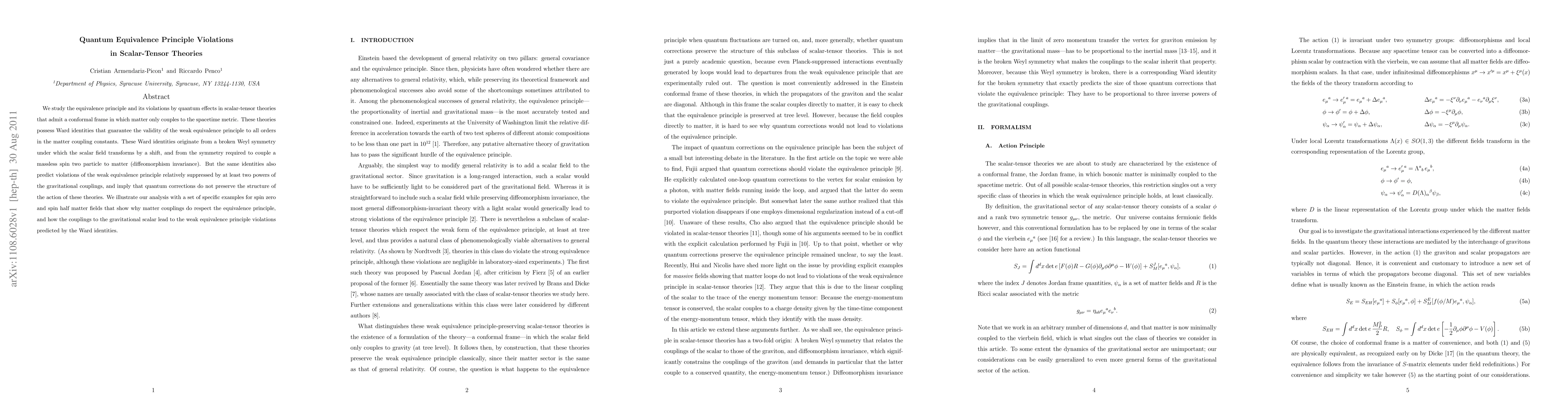 This paper investigates quantum effects on the equivalence principle in scalar-tensor theories, revealing that while Ward identities uphold the weak equivalence principle, they also predict suppressed violations due to quantum corrections, challenging the action's structural integrity. Specific examples for scalar and fermionic matter fields demonstrate the principle's respect and the predicted violations.