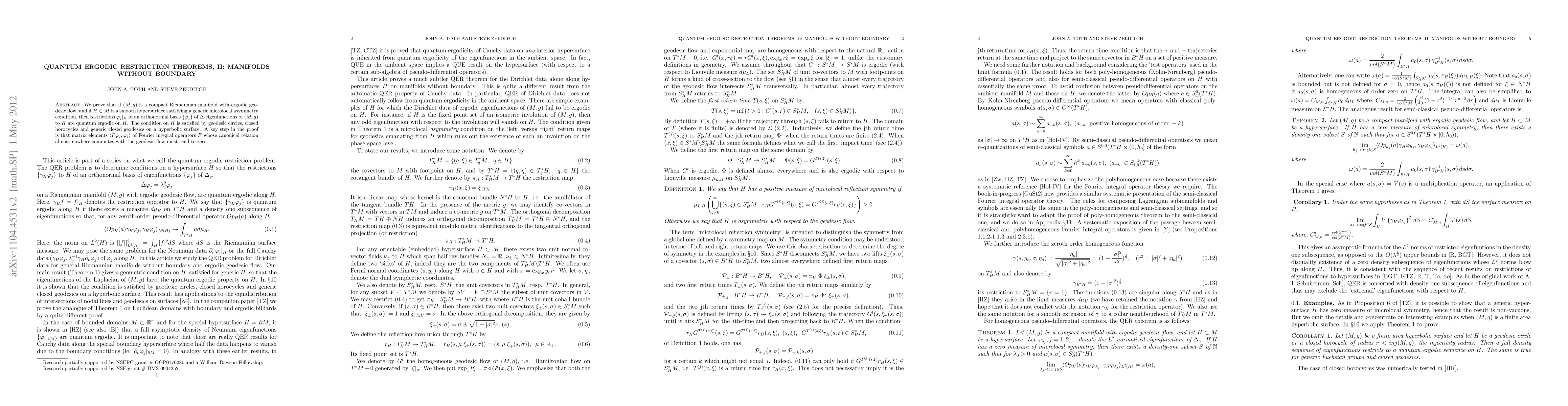 Researchers prove that restrictions of quantum ergodic eigenfunctions to a hypersurface in a compact Riemannian manifold with ergodic geodesic flow are also quantum ergodic, under generic conditions.