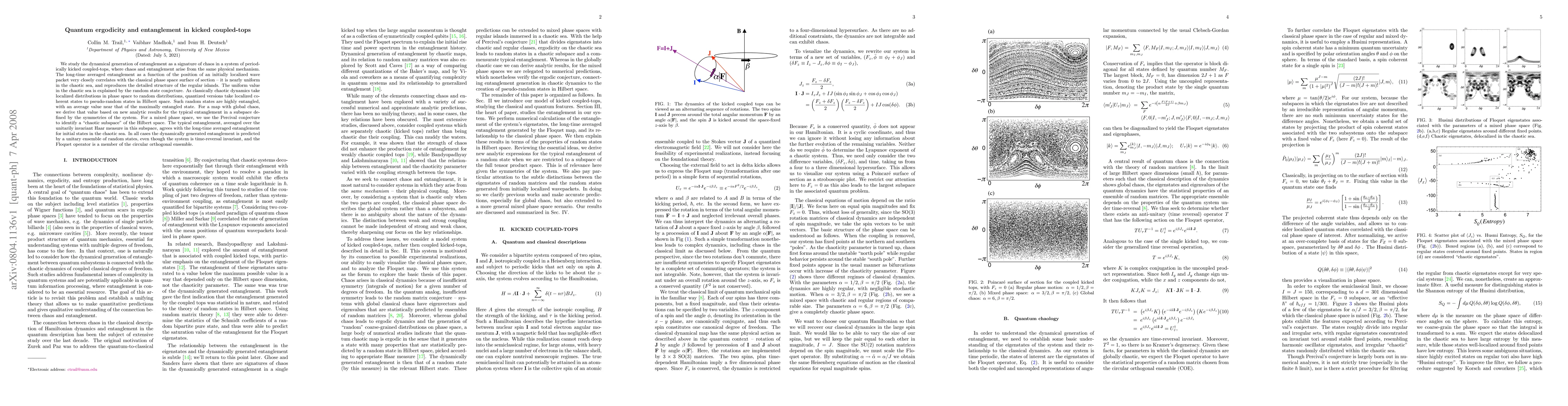 This paper studies how chaos in a system of kicked coupled-tops generates entanglement, finding that it correlates closely with the system's classical phase space structure and is predicted by a random state ensemble.